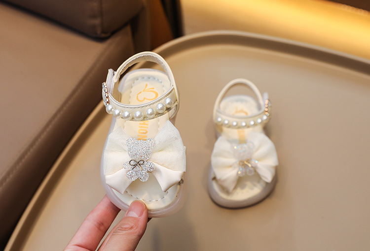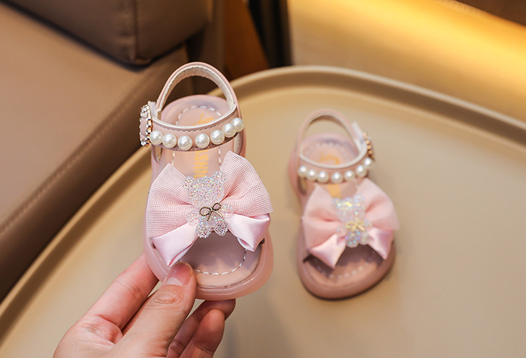 여름 새 어린이 신발 소녀 0-3 세 오픈 토 부드러운 바닥 유아 신발 아기 벨크로 활 공주 샌들스토어 가기