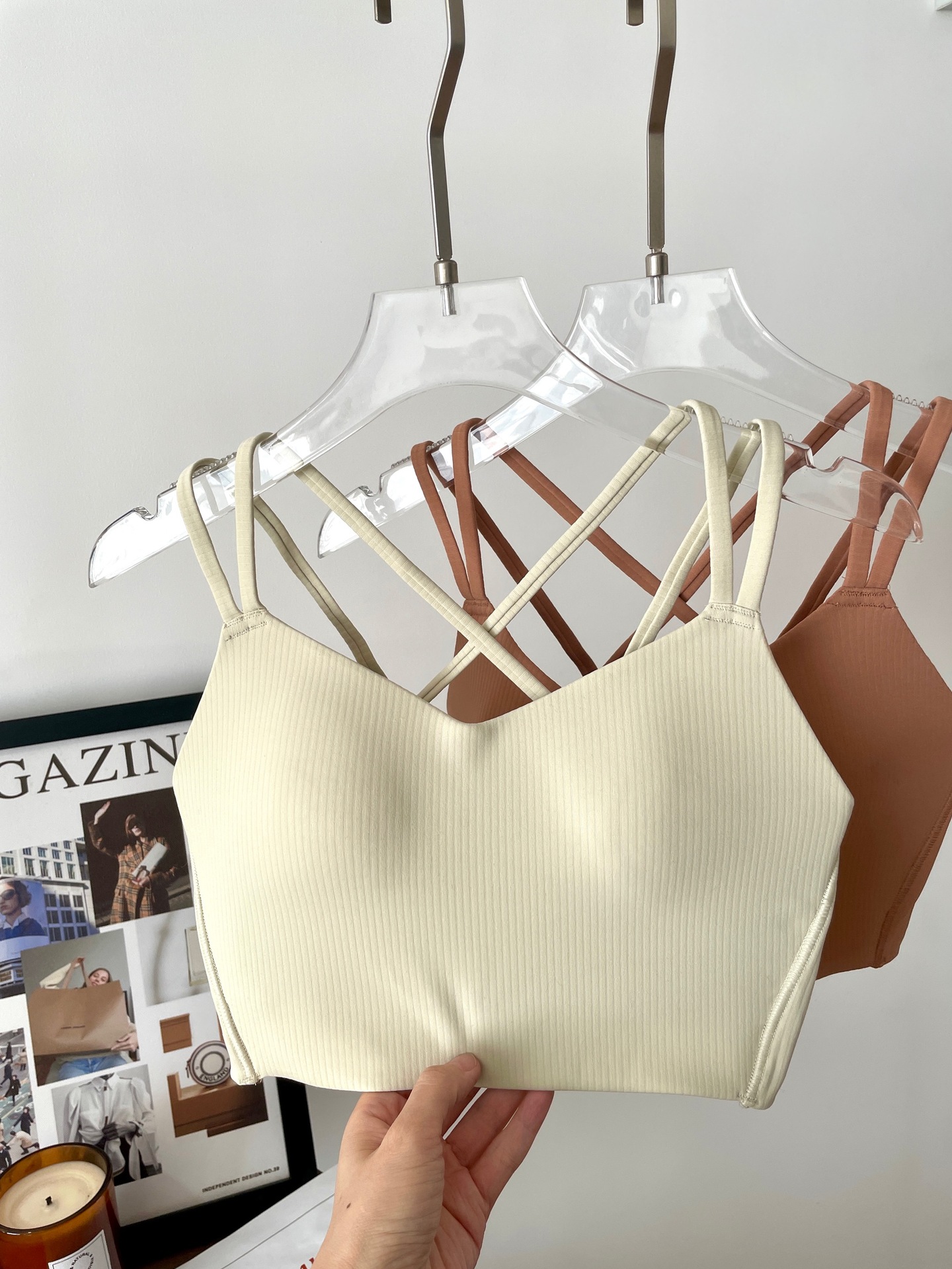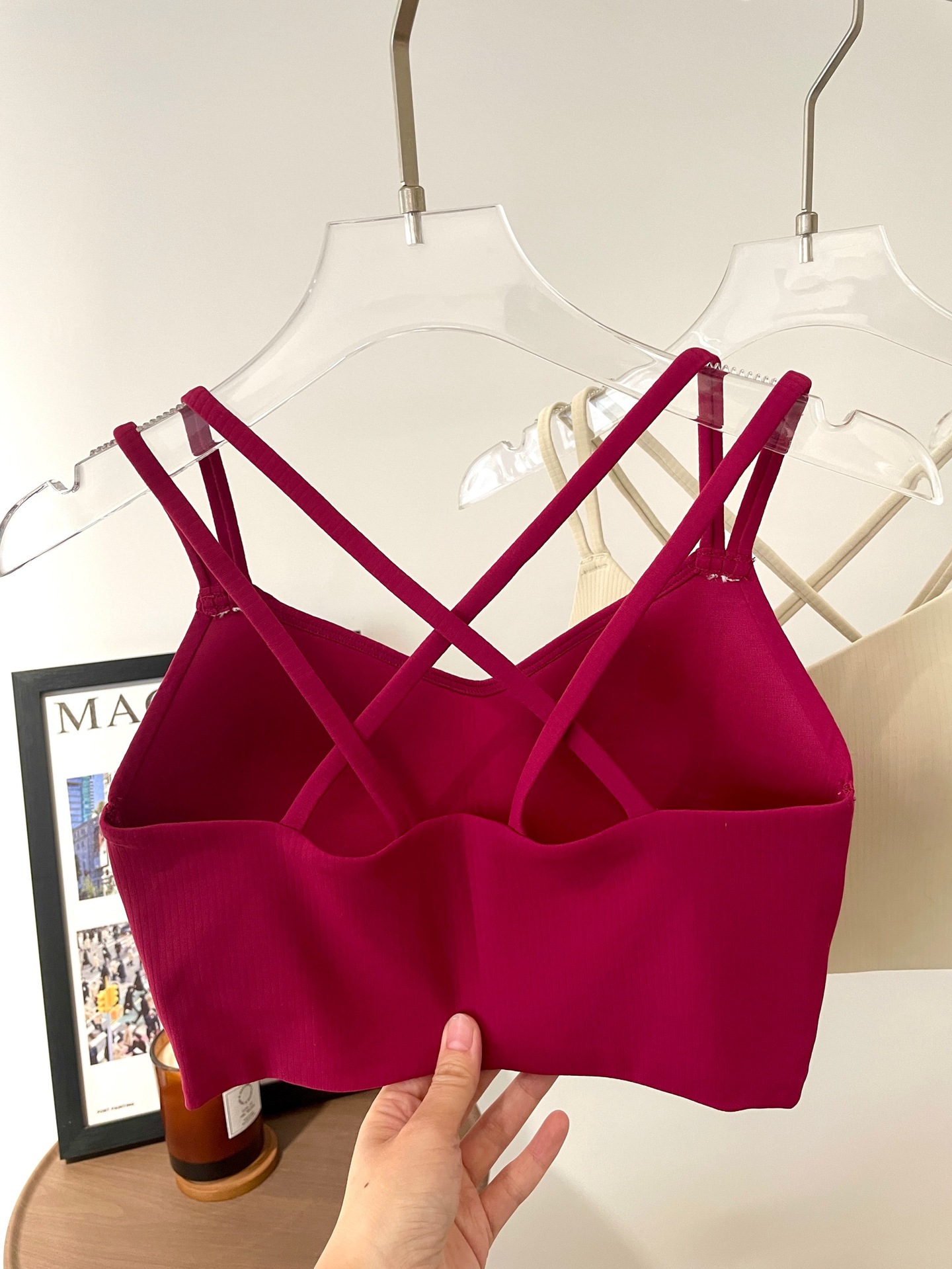 원피스 가슴 패드 중간 고강도 스포츠 속옷 여성 피트니스 브라 요가 속옷 얇은 충격 방지 줄무늬 조끼