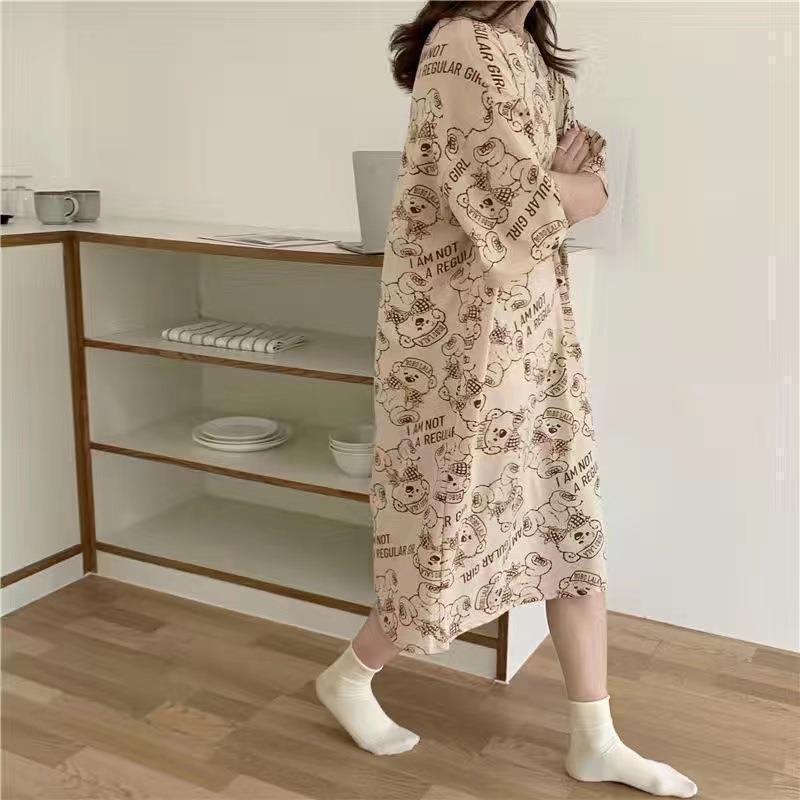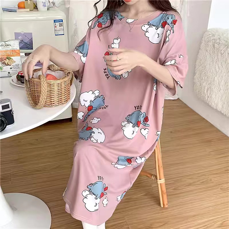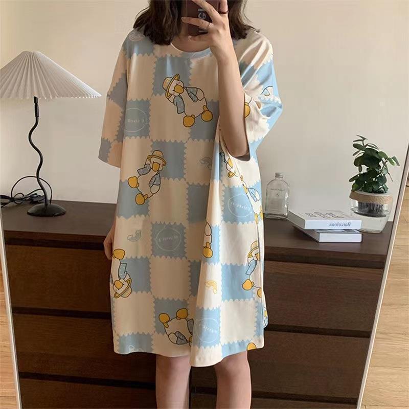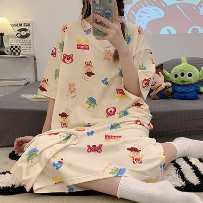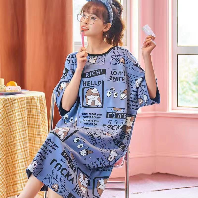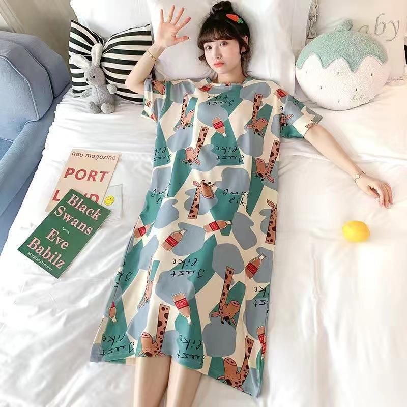 나이트 드레스 여성 여름 짧은 소매 플러스 사이즈 소 잠옷 달콤한 한국식 인터넷 연예인 같은 만화 가정 옷 학생 원피스스토어 가기
