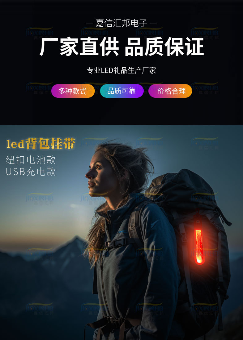 새로운 USB 충전식 LED 발광 배낭 스트랩 야외 경고 라이트 라이딩 등산 펜던트 라이트 인쇄 로고