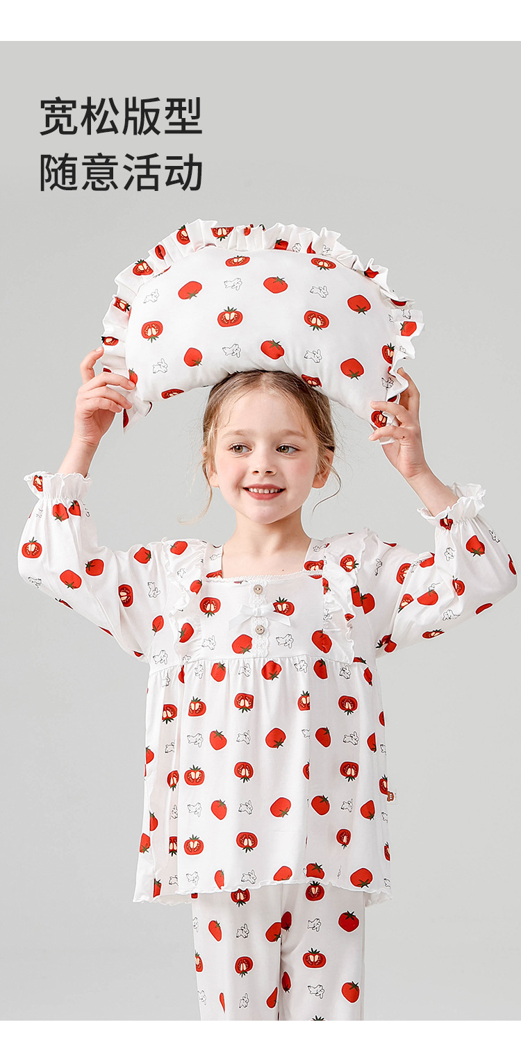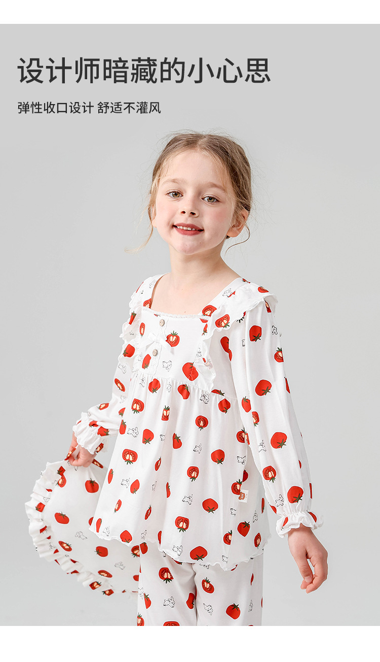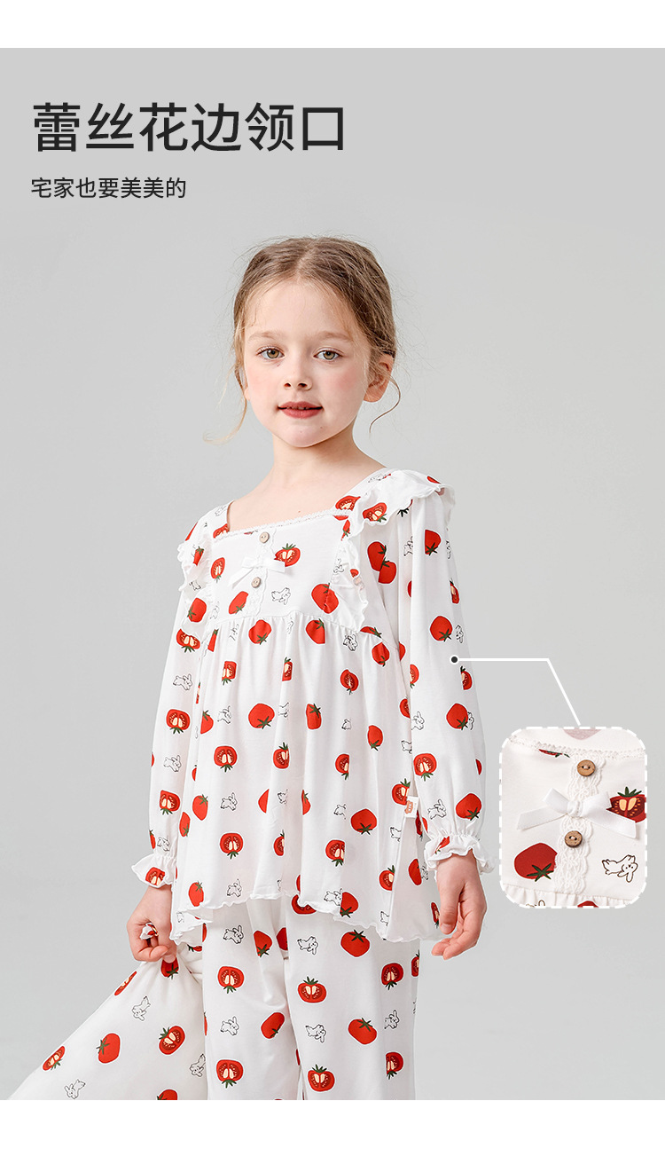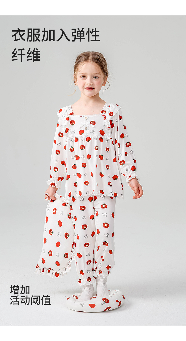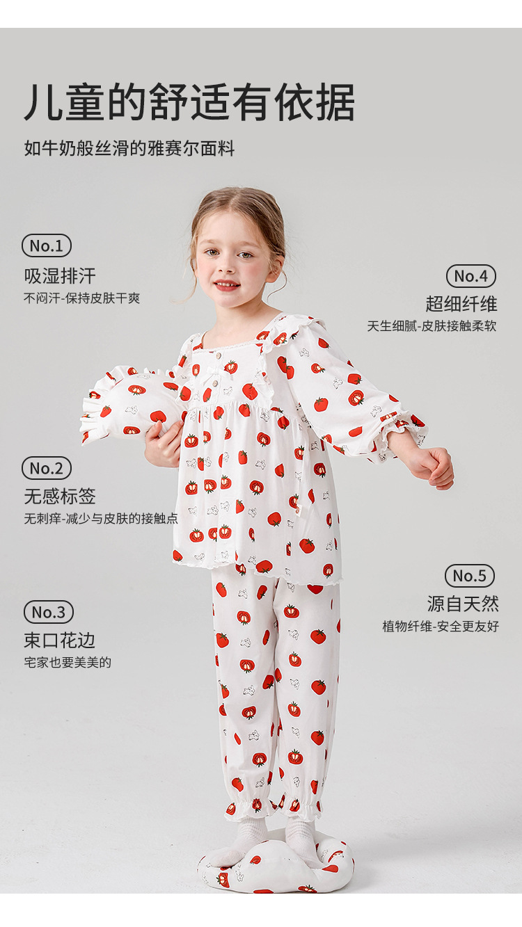J084 디자이너 클래스 A 걸스 홈웨어 봄 야셀 어린이 긴팔 잠옷 달콤한 공주 세트