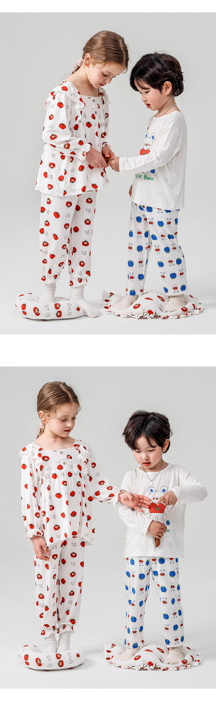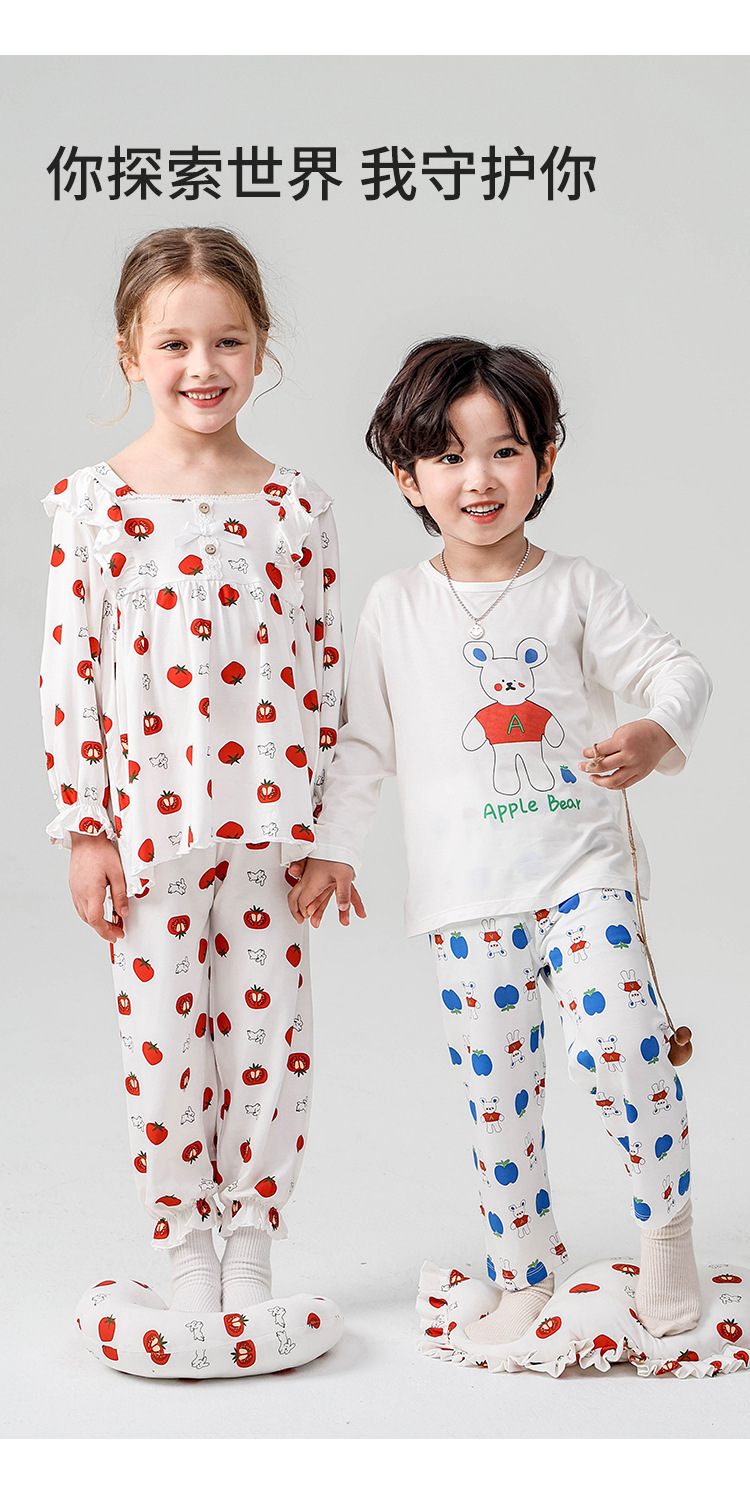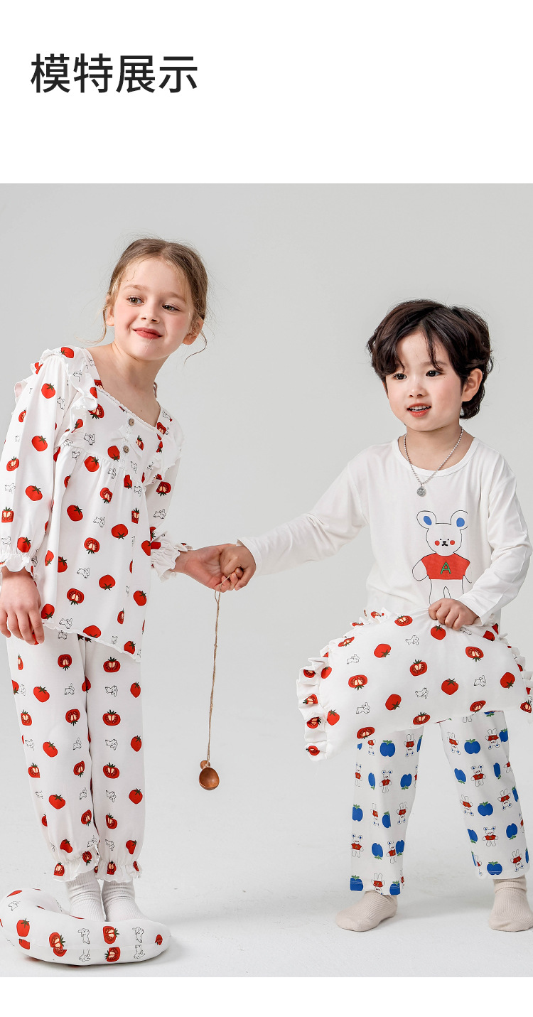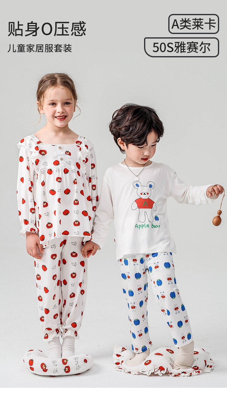 J084 디자이너 클래스 A 걸스 홈웨어 봄 야셀 어린이 긴팔 잠옷 달콤한 공주 세트스토어 가기