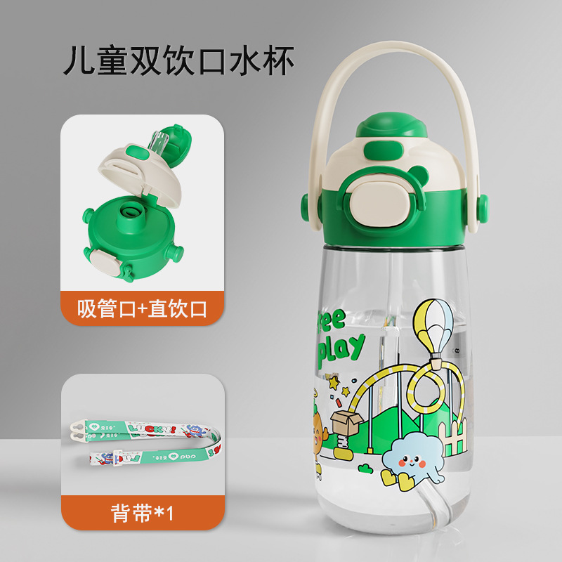 Aiduoqi 어린이 물 컵 이중 사용 밀짚 학생 휴대용 낙하 방지 컵 아기 대용량 주전자 플라스틱 컵스토어 가기