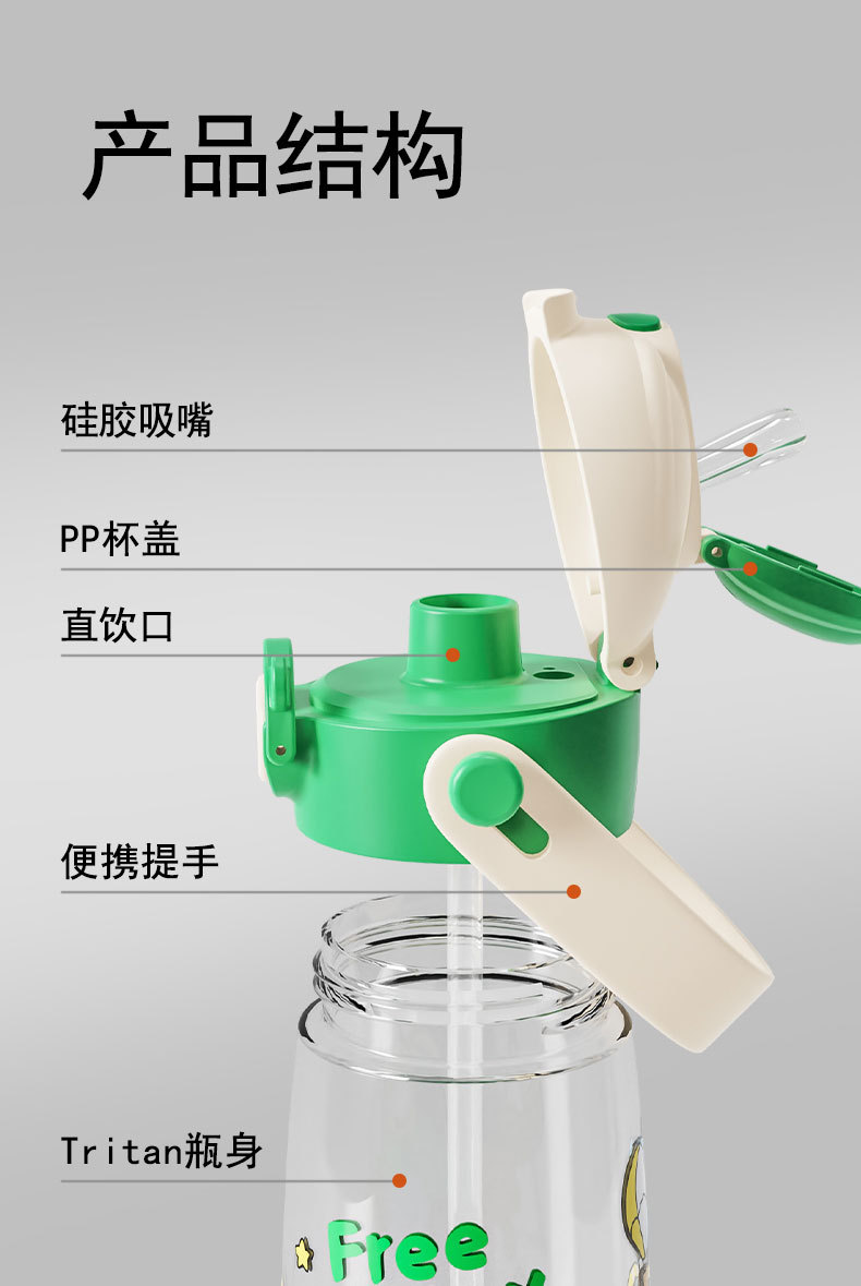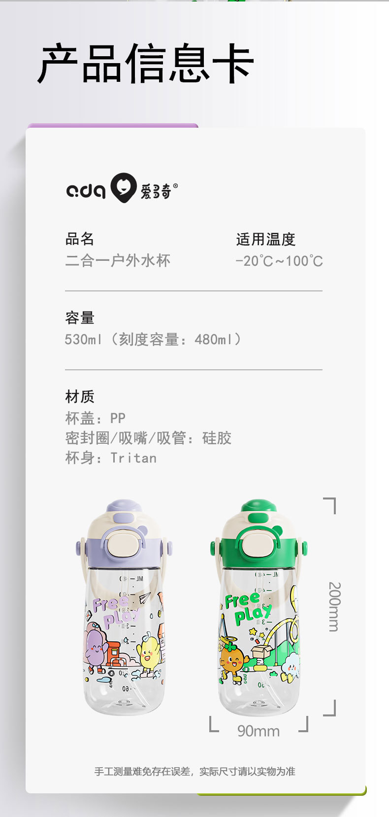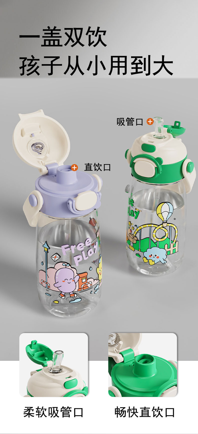 Aiduoqi 어린이 물 컵 이중 사용 밀짚 학생 휴대용 낙하 방지 컵 아기 대용량 주전자 플라스틱 컵