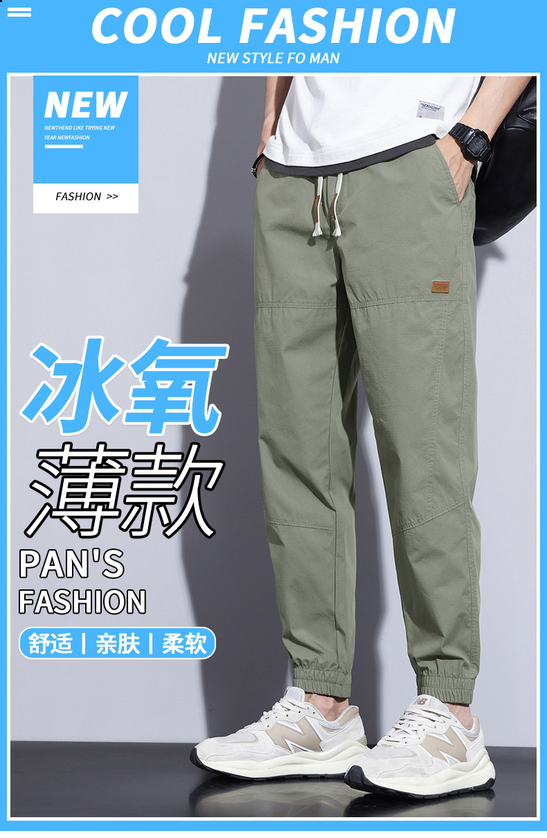 남자 캐주얼 바지 2024 새 여름 얇은 발목 묶인 스포츠 바지 Ruan 잘 생긴 하렘 바지 남자 여름