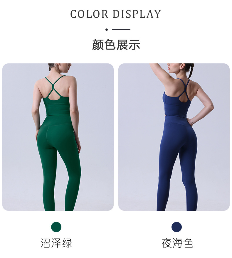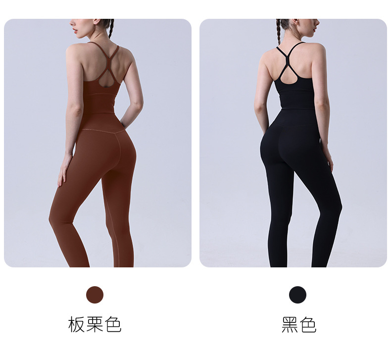 새로운 누드 요가복 세트, 섹시한 크로스백 스포츠 브라, 복숭아 엉덩이 하이웨이스트 요가복