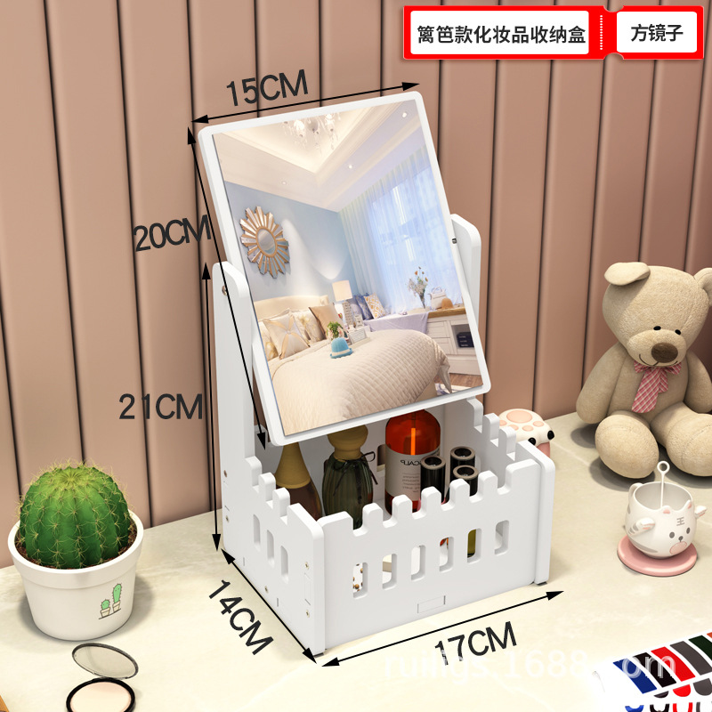 메이크업 거울 휴대용 거울 소녀 인터넷 유명 인사 데스크탑 드레싱 거울 학생 기숙사 드레싱 테이블 간단한 거울 보관 상자