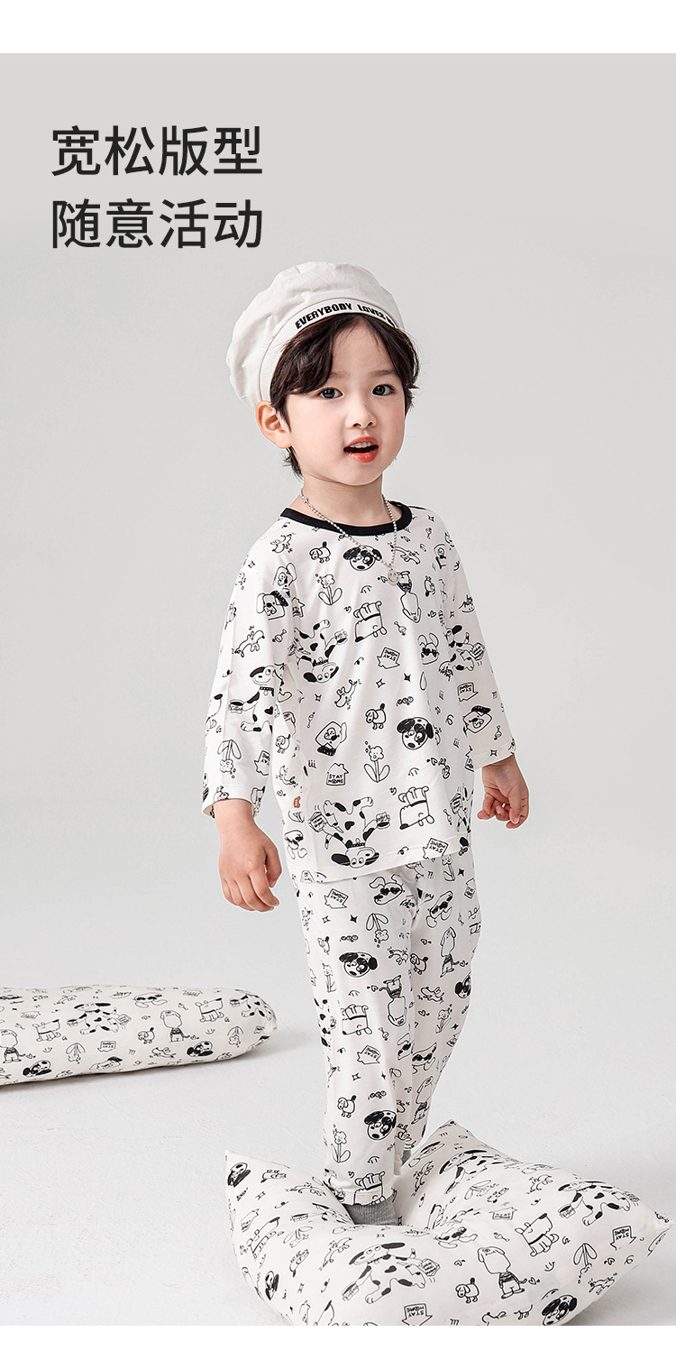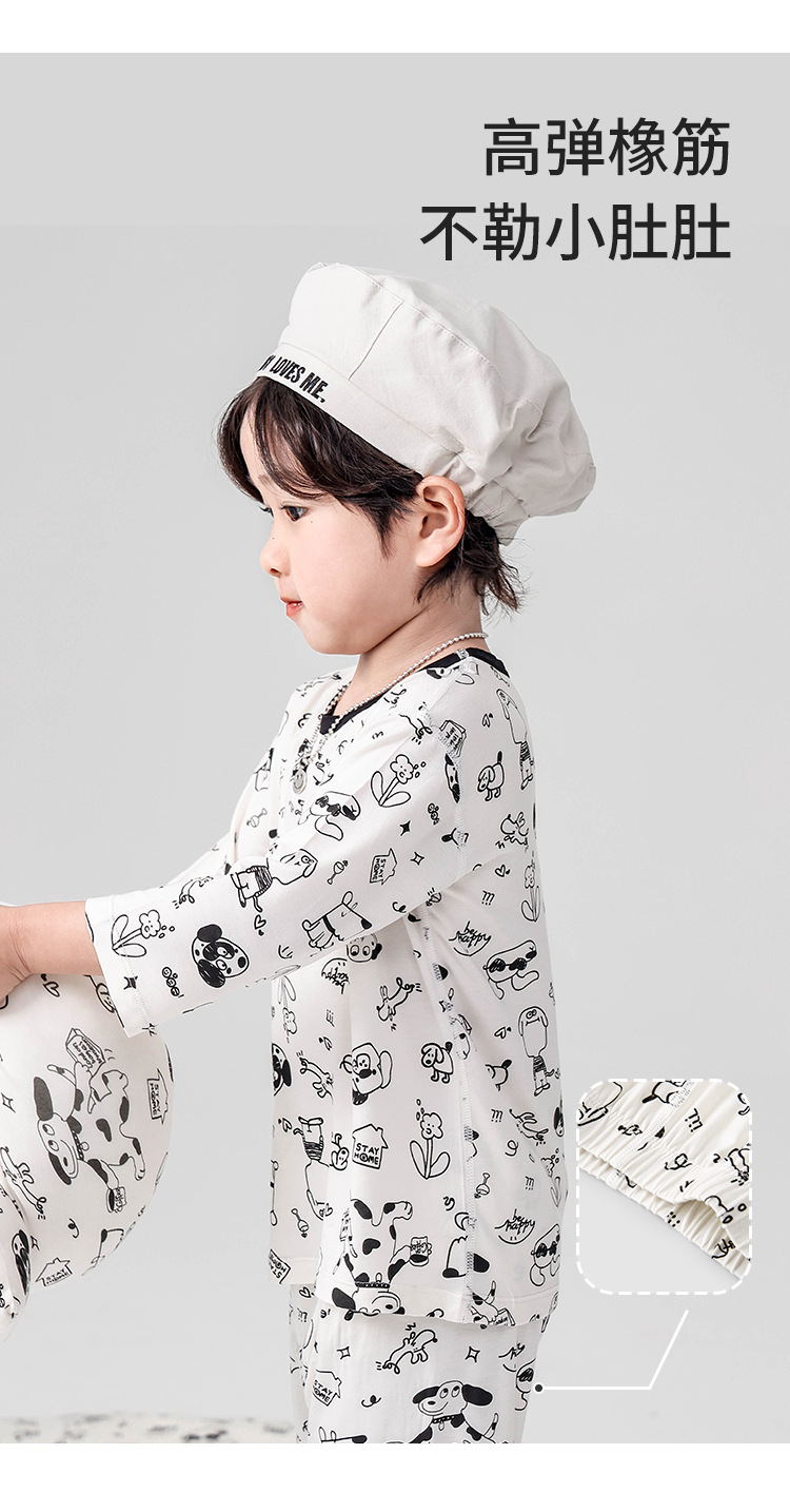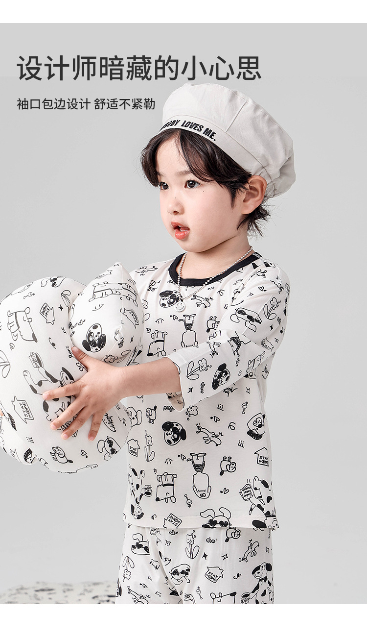 J091 디자이너 2024 봄/여름 얇은 만화 소년 홈웨어 반소매 뼈없는 야셀 어린이 잠옷스토어 가기