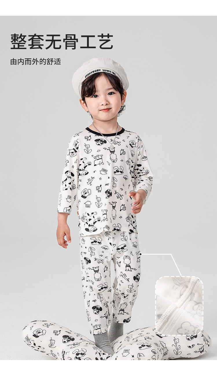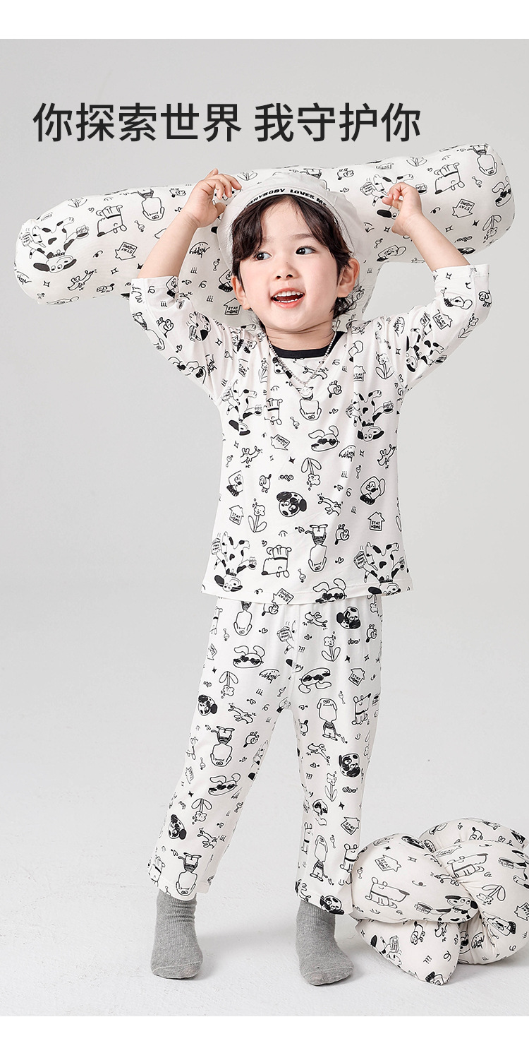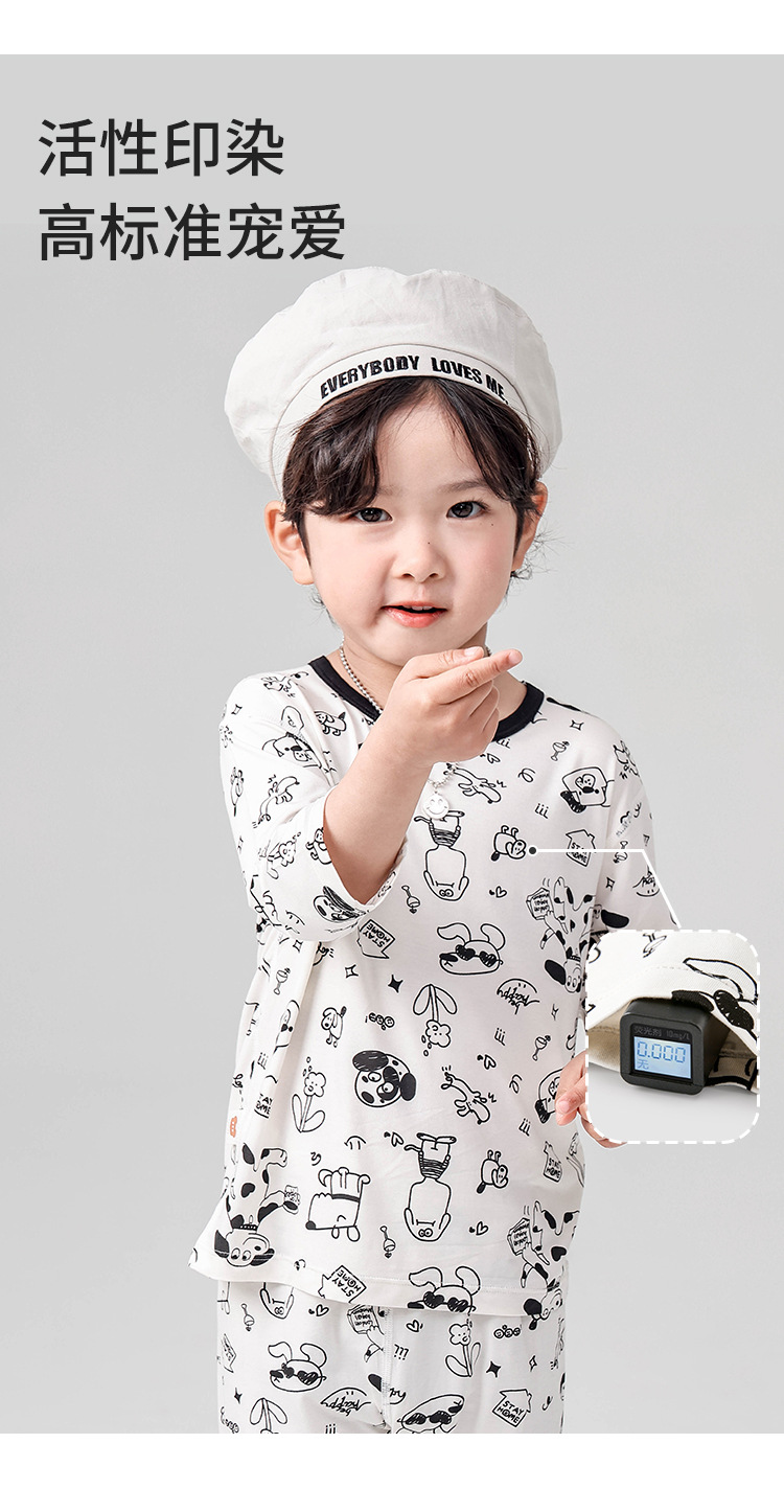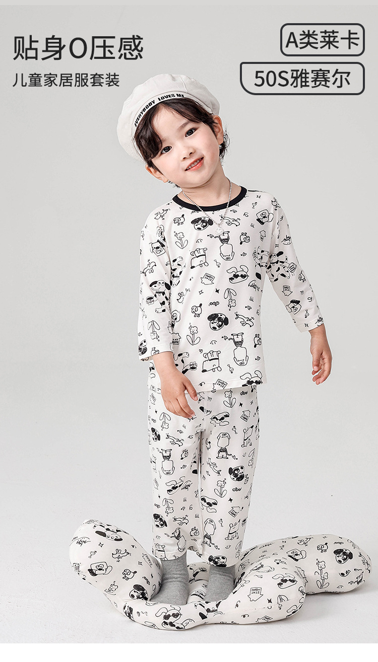 J091 디자이너 2024 봄/여름 얇은 만화 소년 홈웨어 반소매 뼈없는 야셀 어린이 잠옷스토어 가기