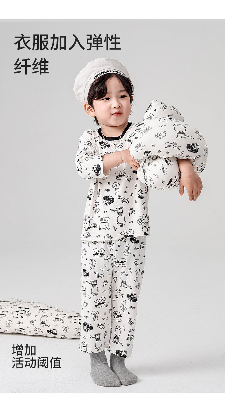 J091 디자이너 2024 봄/여름 얇은 만화 소년 홈웨어 반소매 뼈없는 야셀 어린이 잠옷