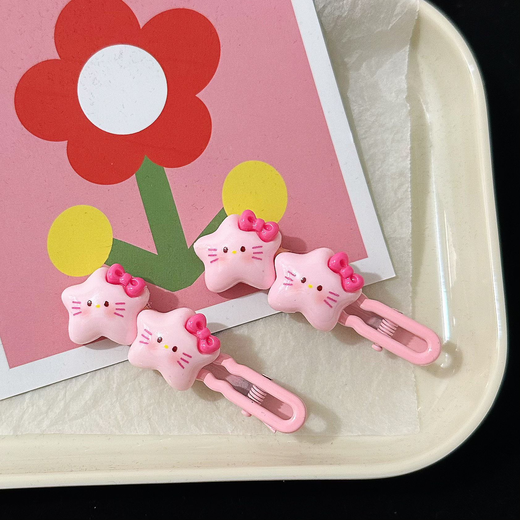 봄 귀여운 핑크 스타 덕빌 클립 만화 고양이 머리핀 달콤한 소녀 이마 깨진 머리 머리핀 보석 클립