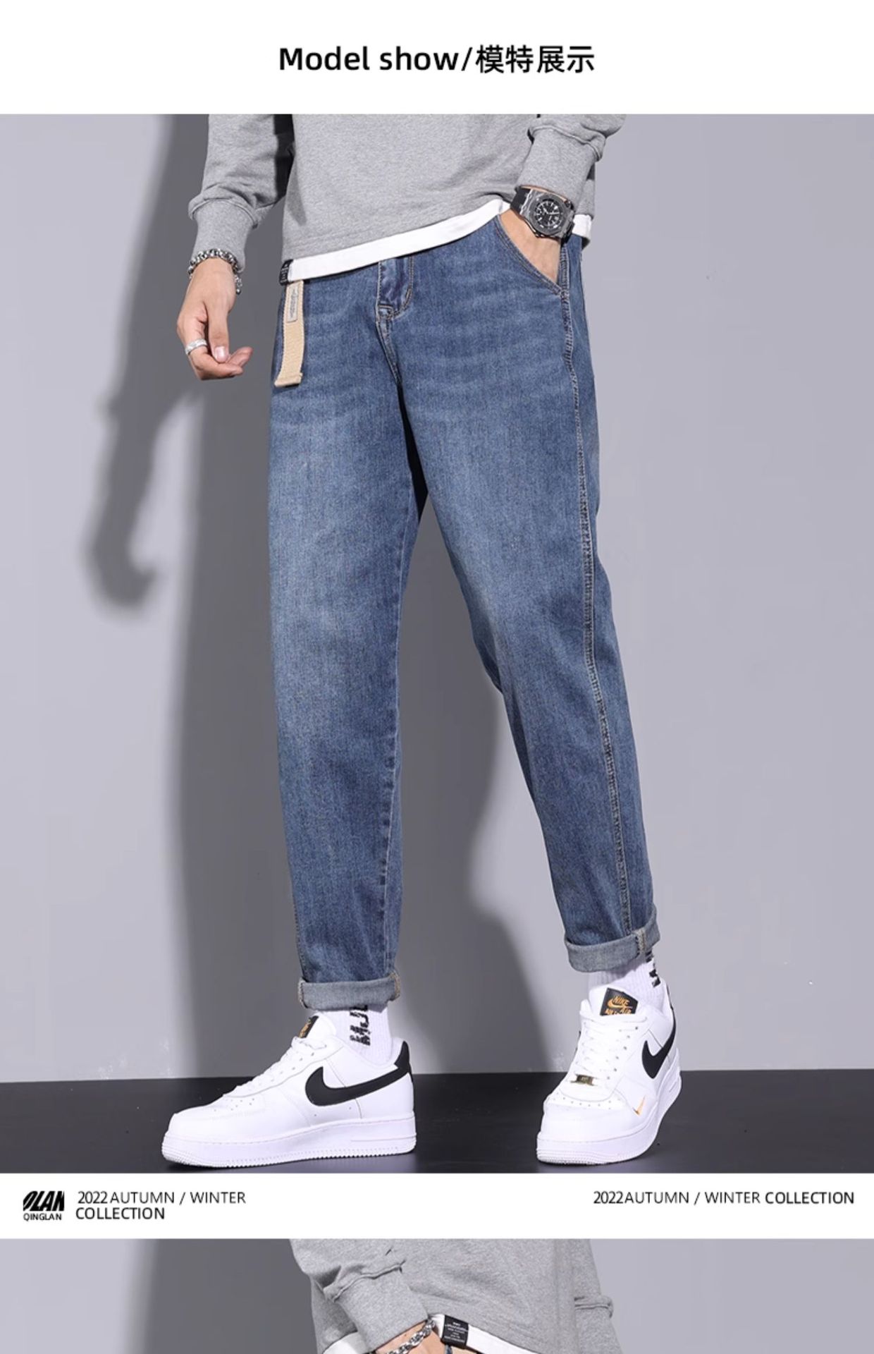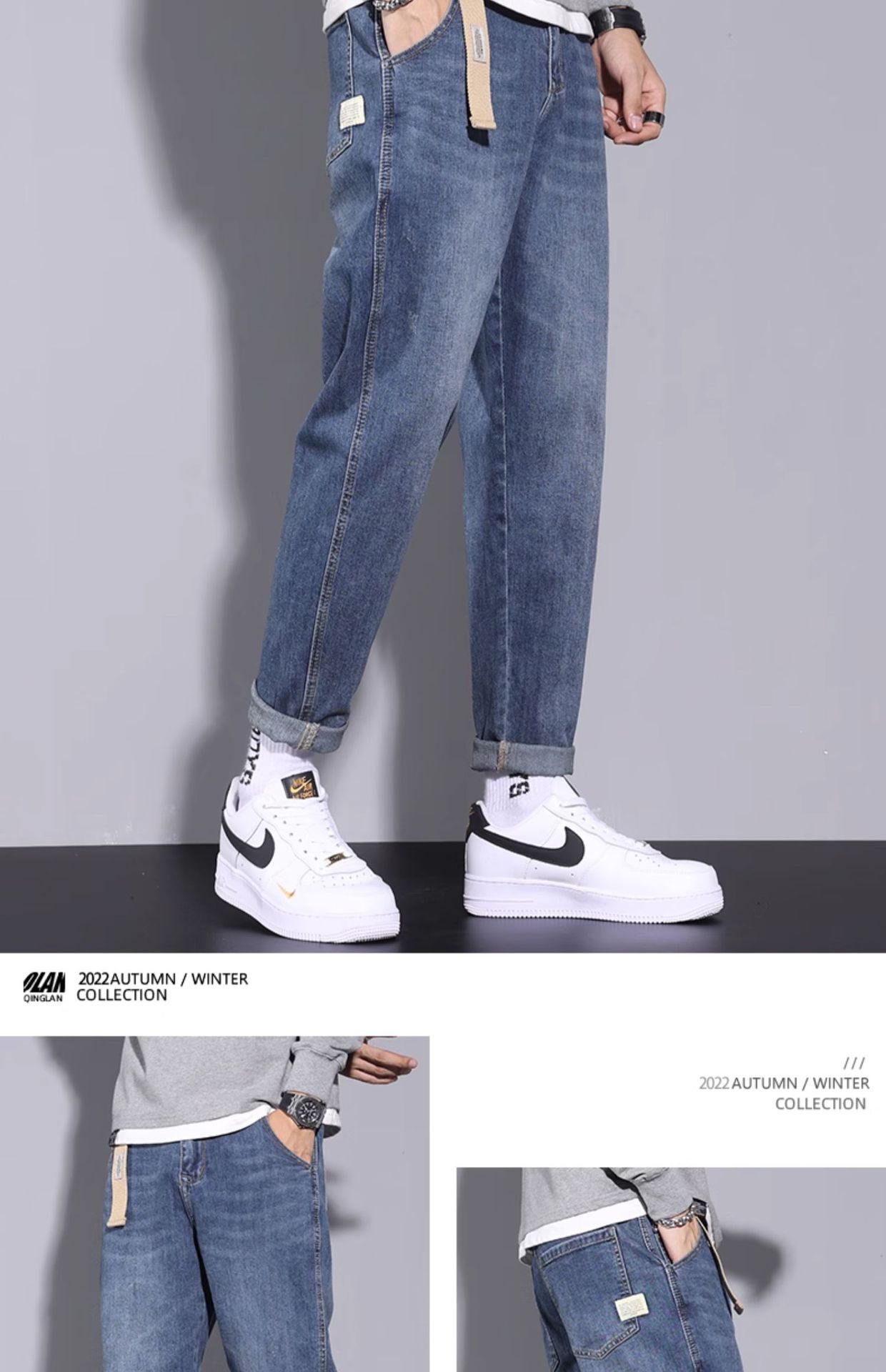 청바지 남자의 느슨한 스트레이트 패션 브랜드 봄과 여름 다용도 2024 새로운 봄과 가을 긴 바지 패션 캐주얼 패션스토어 가기