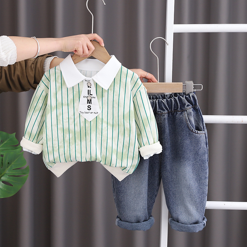 어린이 의류 2024 새로운 한국식 줄무늬 카디건 0-5 세 투피스 세트 소년 어린이 봄옷 어린이 세트