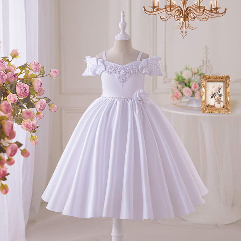 진주 단색 소녀 공주 원피스 휴일 연회 저녁 원피스 소녀 원피스 어린 소녀 꽃 허리 원피스