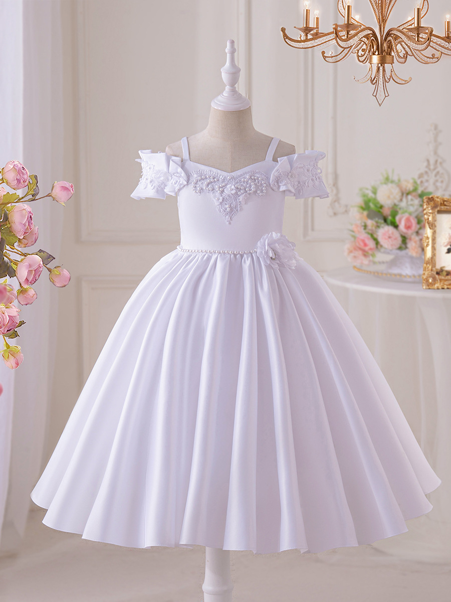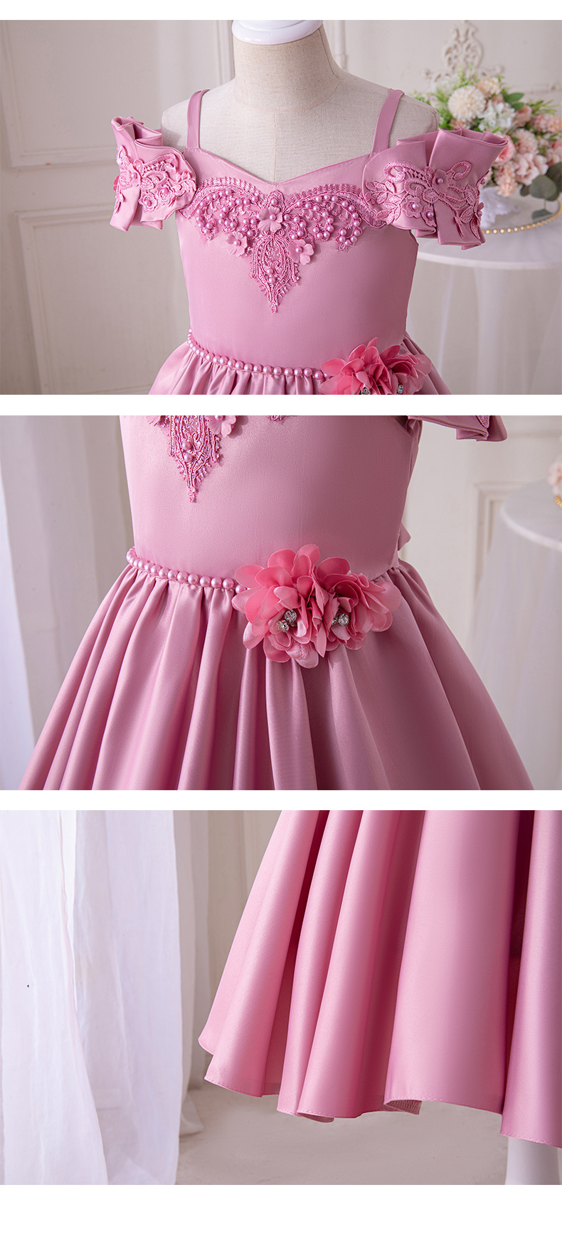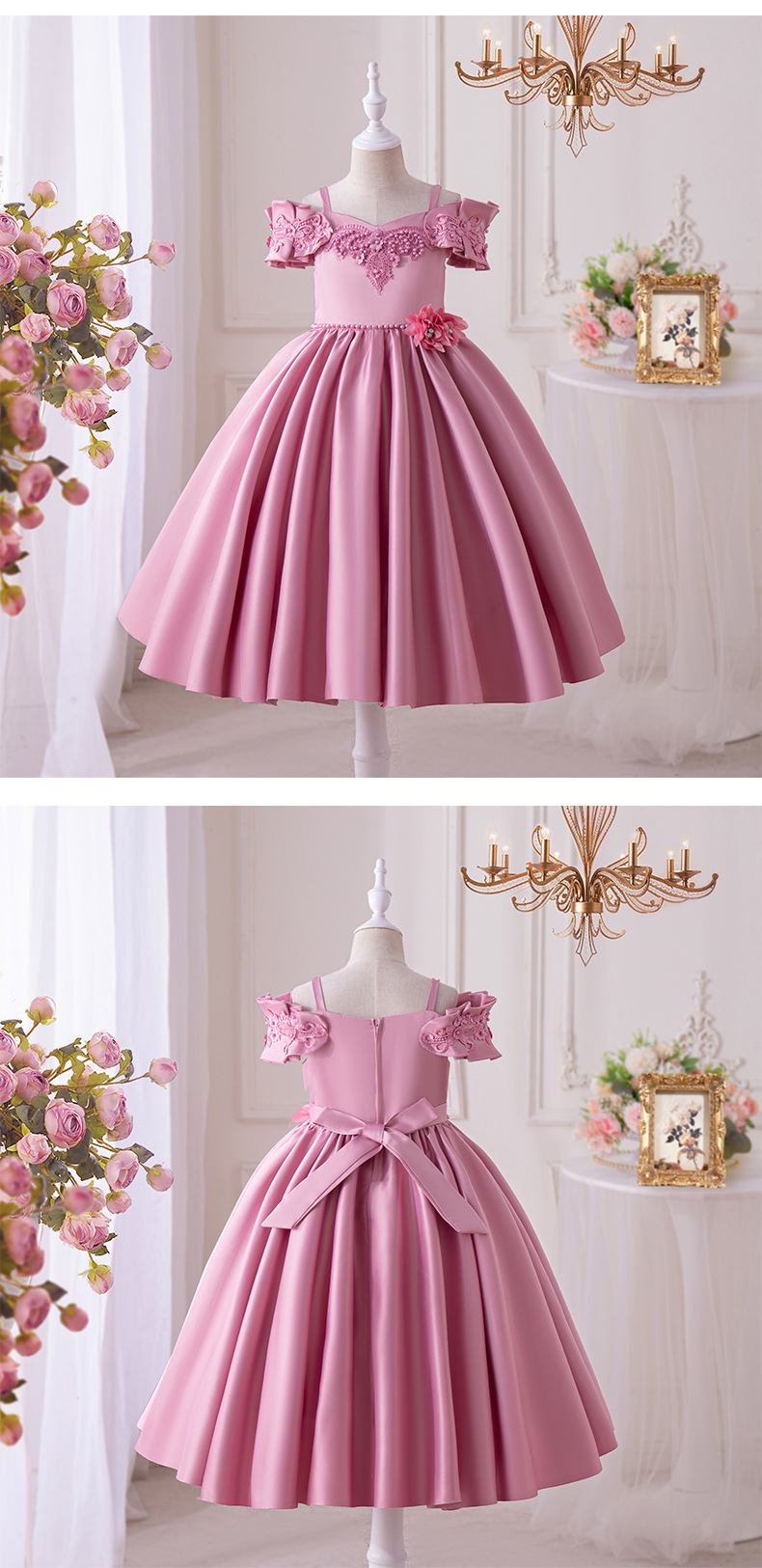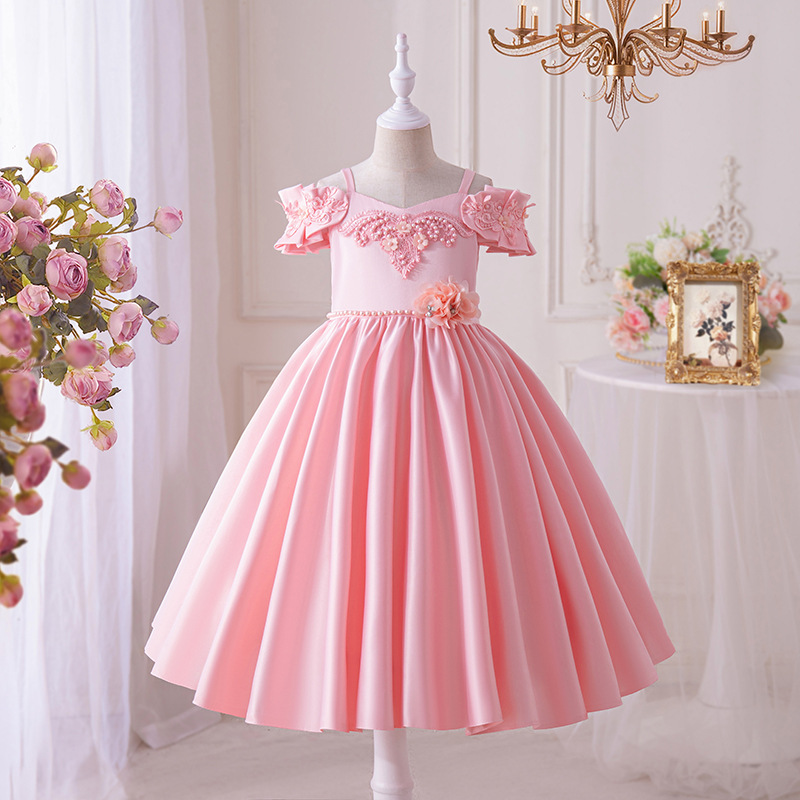 110码-120码-130码-140码-150码-160码   节日宴会晚礼服女童连衣裙小女孩花朵腰饰裙子珍珠纯色女童公主裙