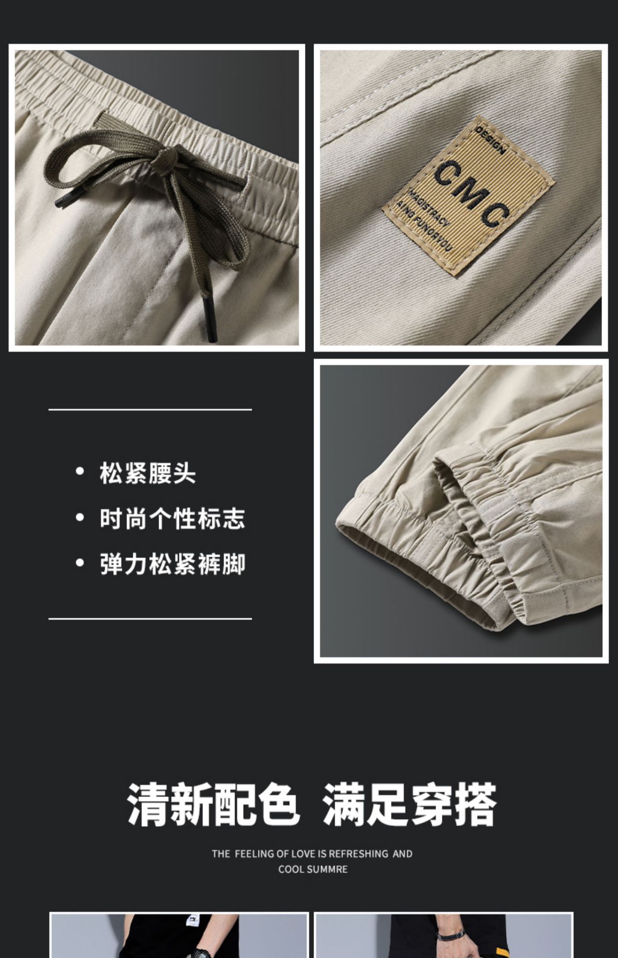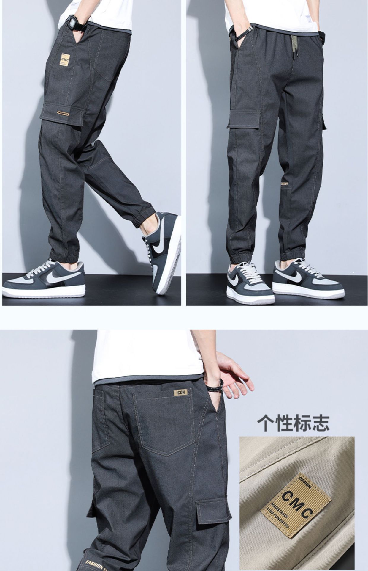 남성 캐주얼 바지 여름 얇은 느슨한 발목 묶은 하렘 바지, 패션 브랜드 툴링 2024 아이스 실크 바지 남성
