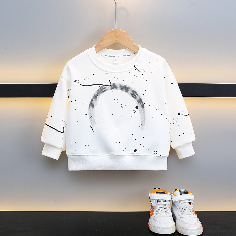 소년 스웨터 봄과 가을 2024 새로운 서양식 아동복 인쇄 풀오버 아기 봄 의류 바닥 셔츠 패션