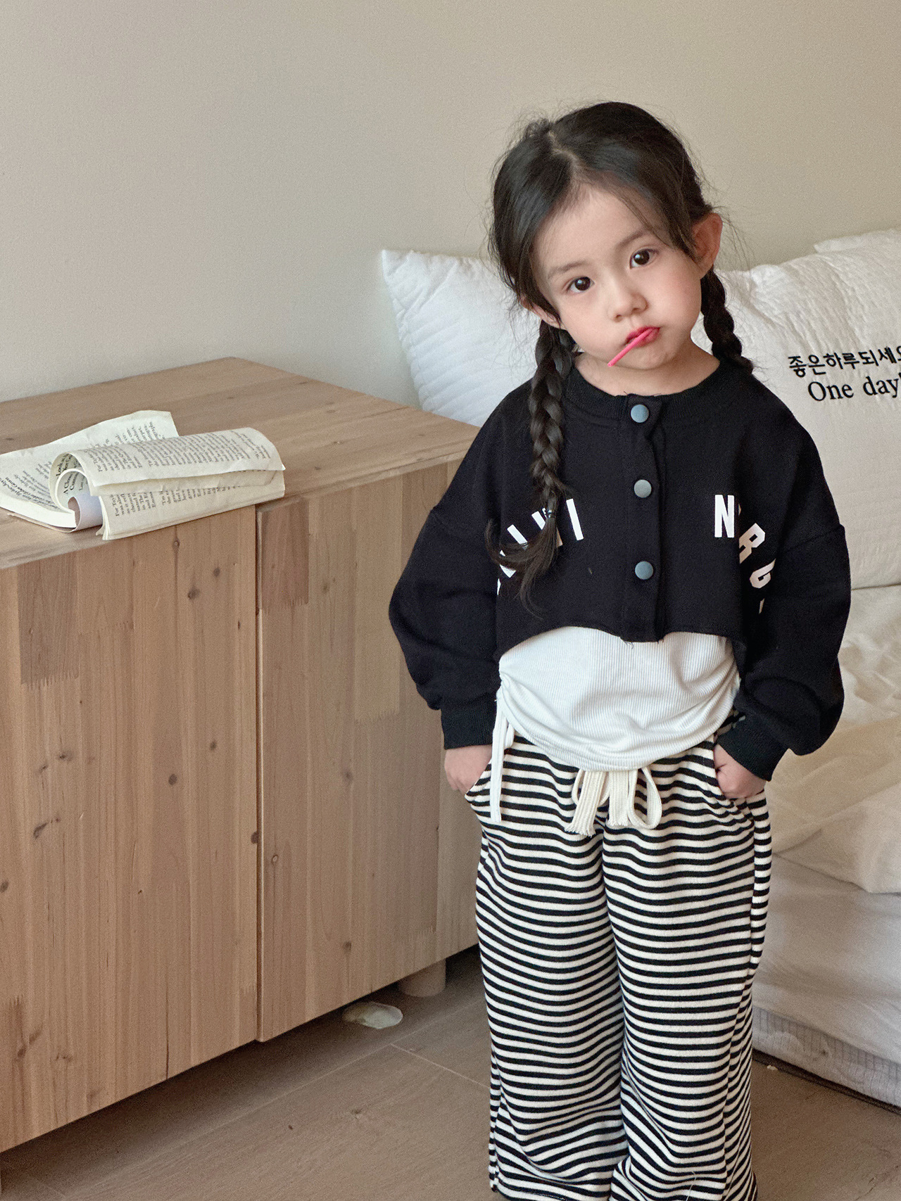 면 멀티 미터 소녀 세트 2024 봄 아동복 아기 소녀의 넓은 다리 바지 코트 어린이 스웨터 바지 투피스 세트스토어 가기