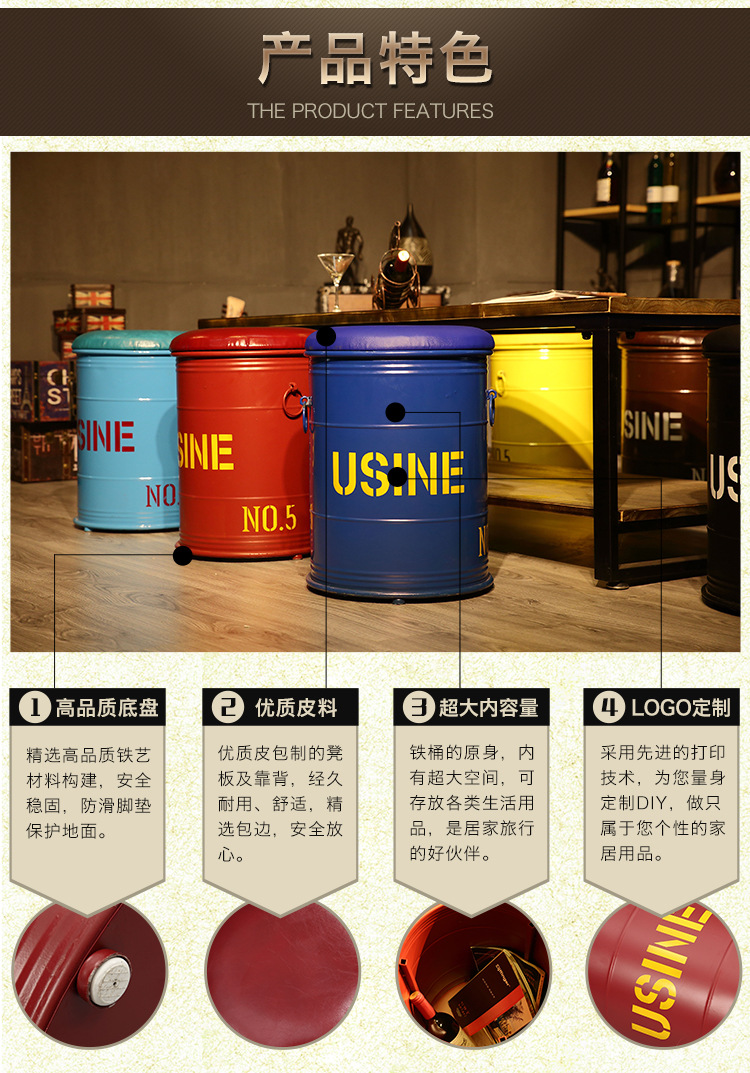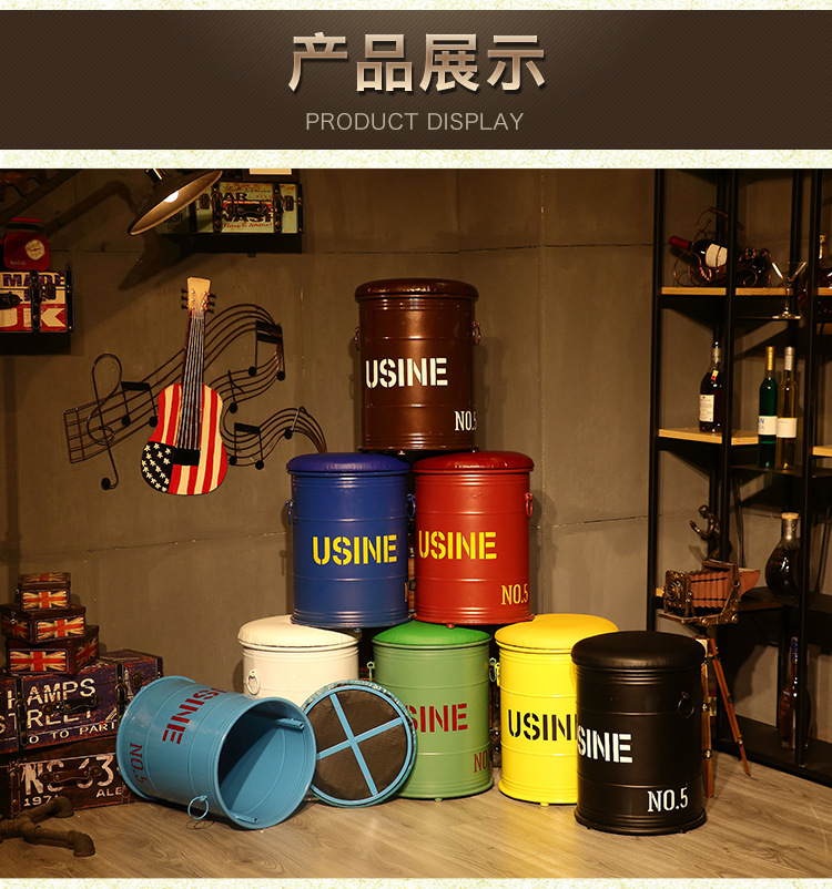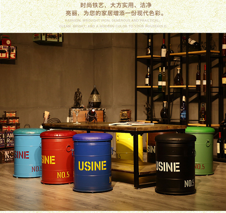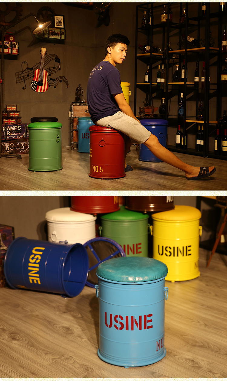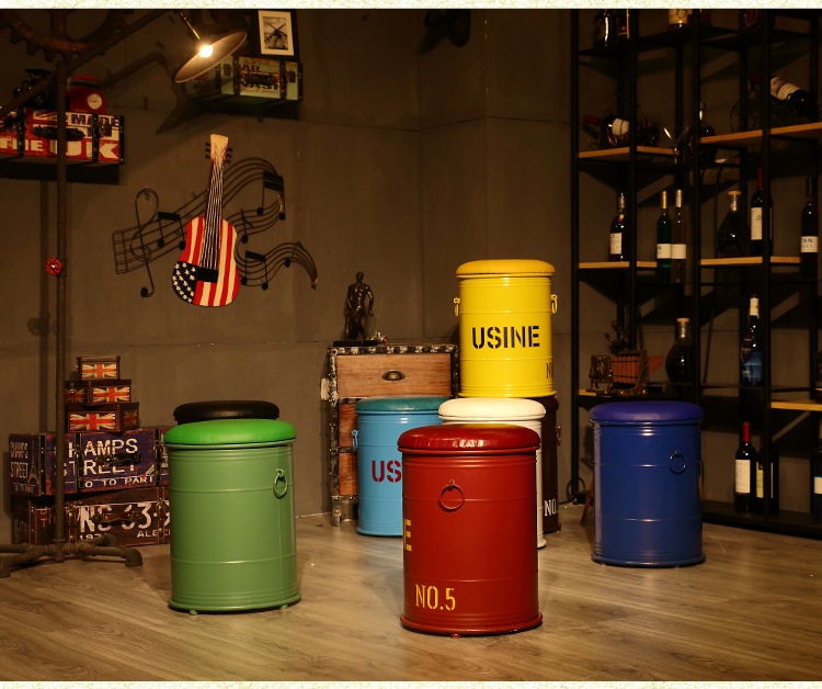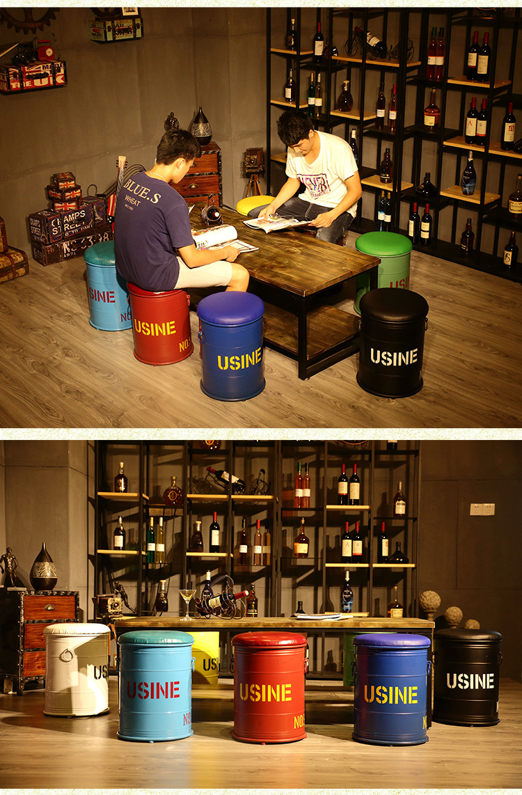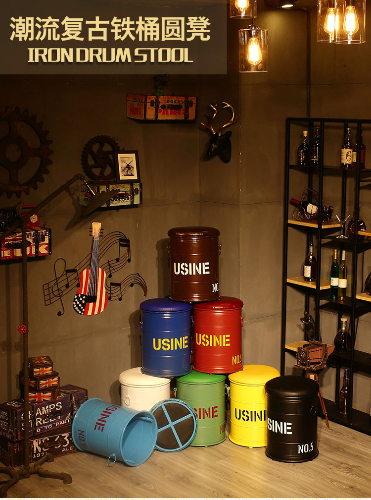 미국 복고풍 철 철 의자 미국 오일 버킷 의자 바 의자 둥근 의자 의자 커피 바 창조적 인 장식스토어 가기