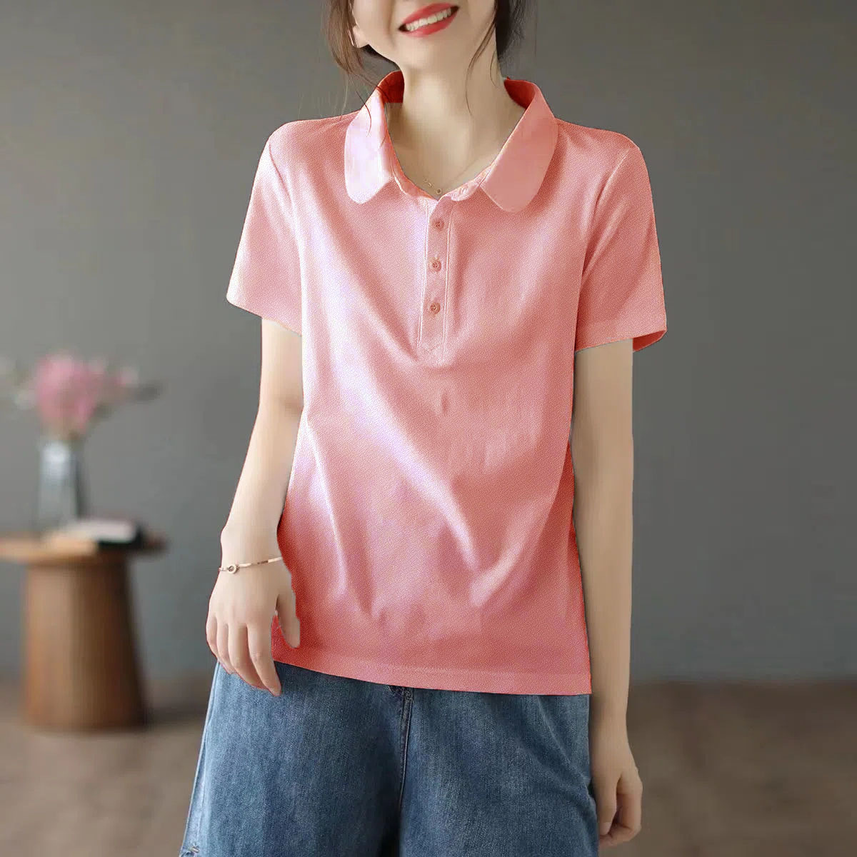 여성 반팔 POLO 셔츠 칼라 여름 티셔츠 여성용 반팔 단색 반소매 여성 풀오버 여성 최고 플러스 사이즈 여성 의류스토어 가기
