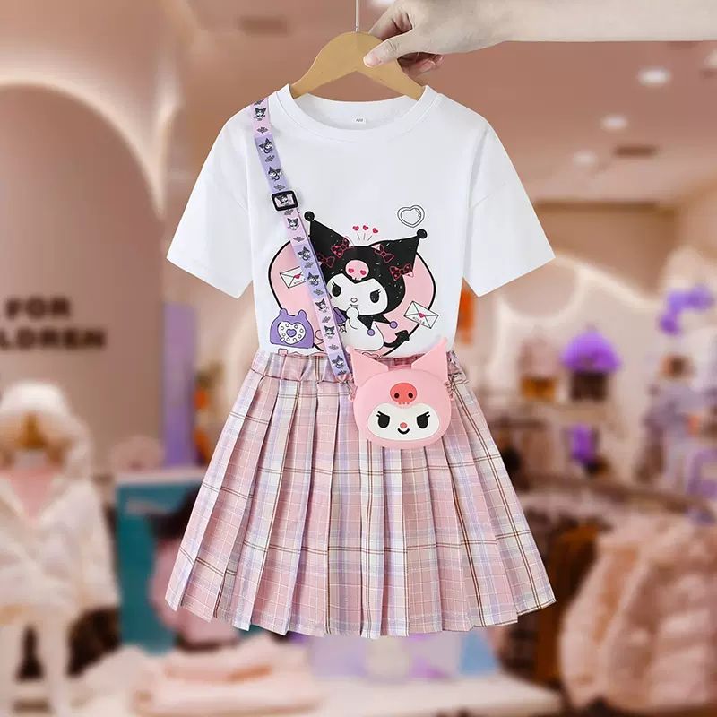 여자 프레피 스타일 티셔츠 짧은 치마 세트 여름 새 소녀 JK 세트 아동복 서양식 주름 치마스토어 가기
