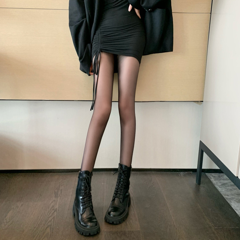 더블 레이어 웨이브 포인트 라이트 레그 아티팩트 가을과 겨울 기모 두꺼운 검은 피부는 실크 스타킹 안티 훅 블랙 실크 레깅스에서 떨어질 수 없습니다