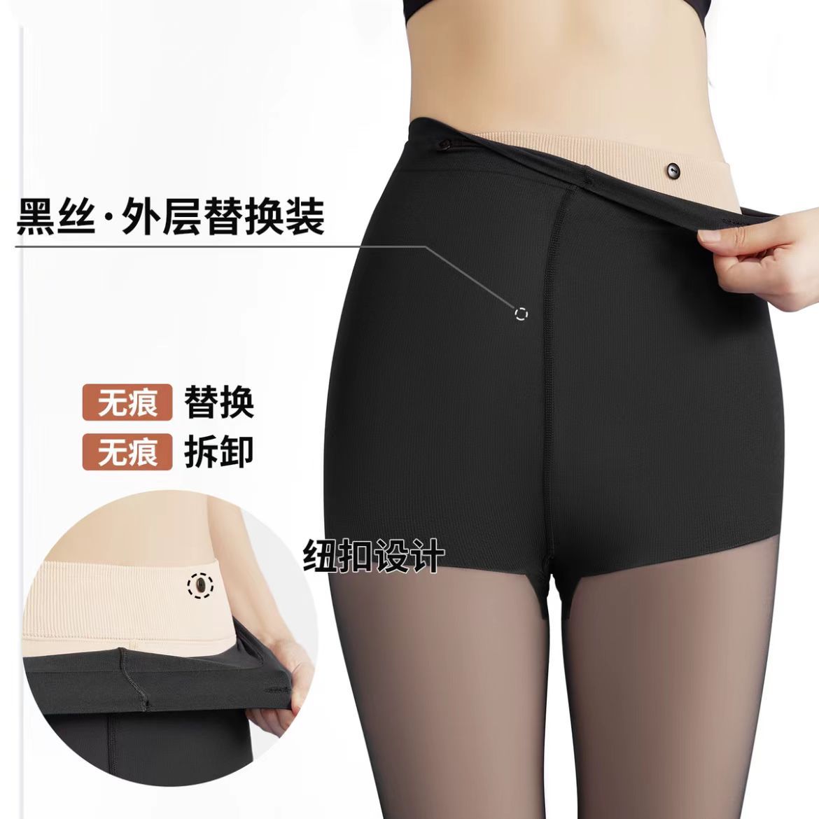 더블 레이어 웨이브 포인트 라이트 레그 아티팩트 가을과 겨울 기모 두꺼운 검은 피부는 실크 스타킹 안티 훅 블랙 실크 레깅스에서 떨어질 수 없습니다스토어 가기