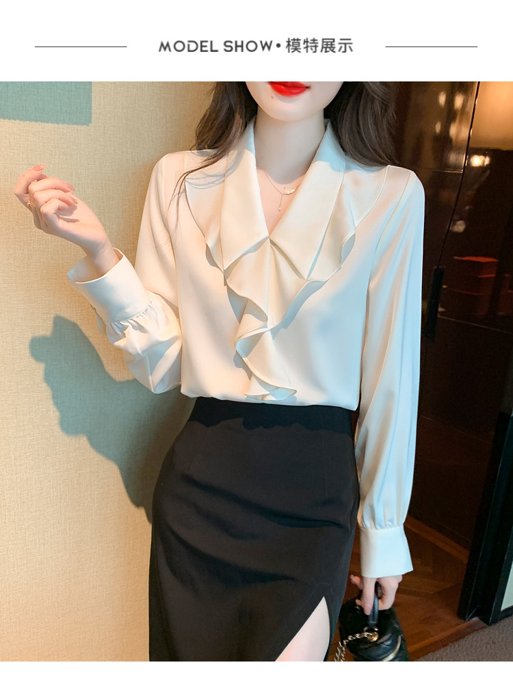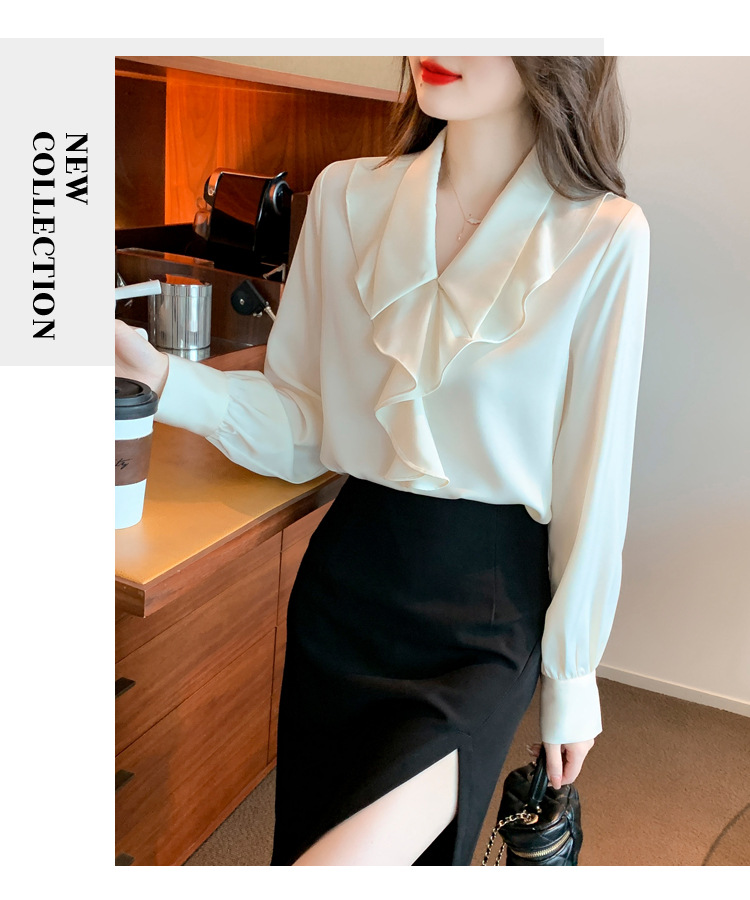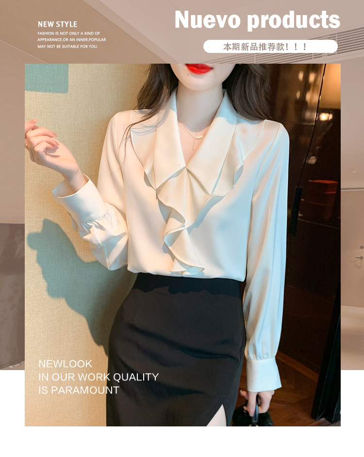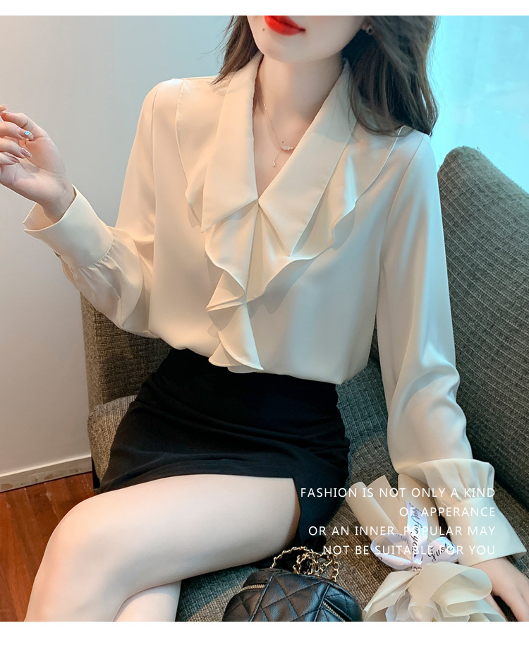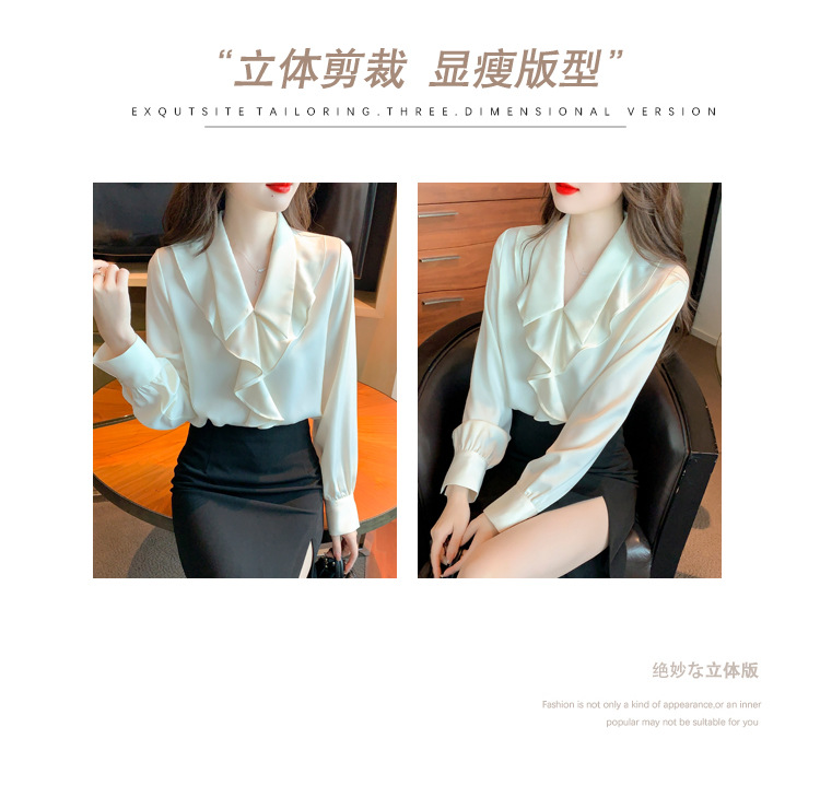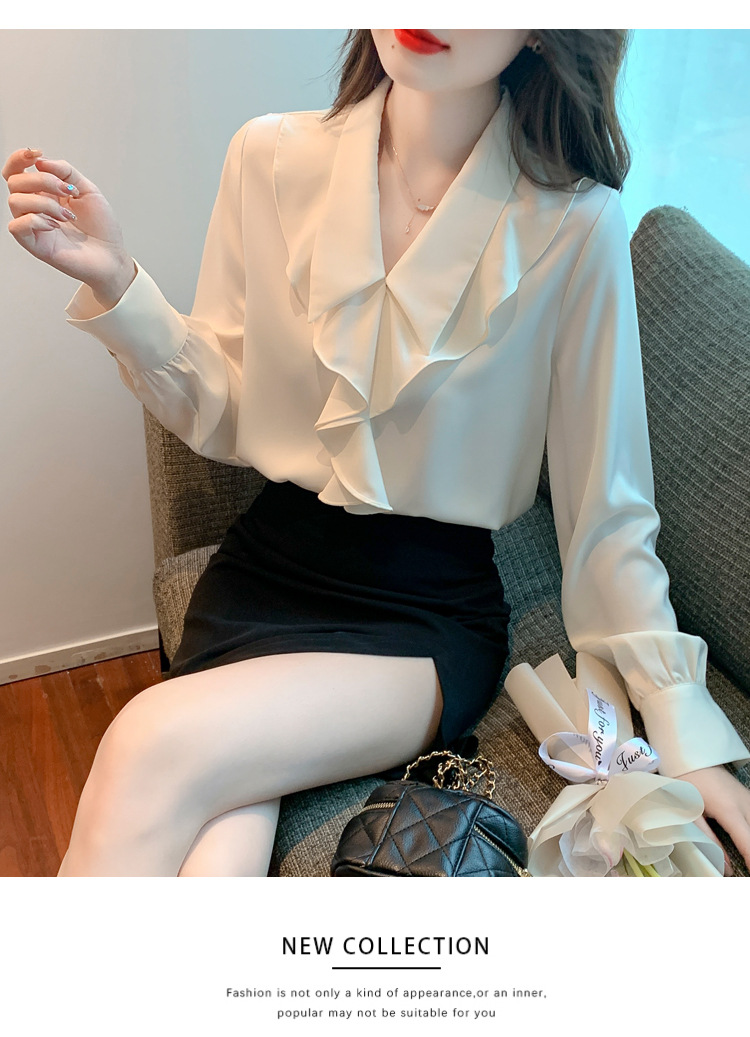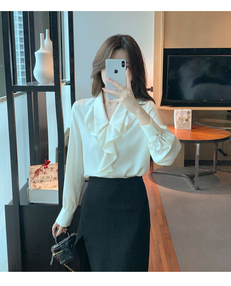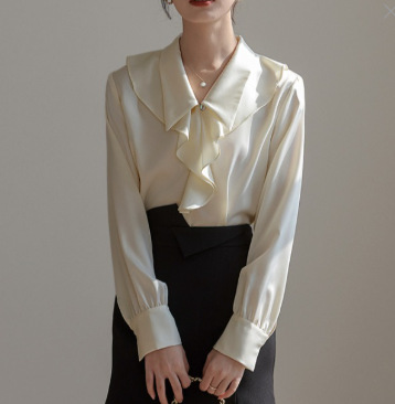 러플 셔츠 독특한 세련된 아름다운 프랑스 달콤한 탑 여성 봄과 가을 한국 스타일 전문 셔츠 착용스토어 가기