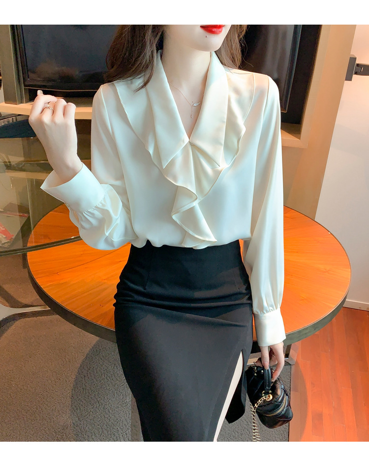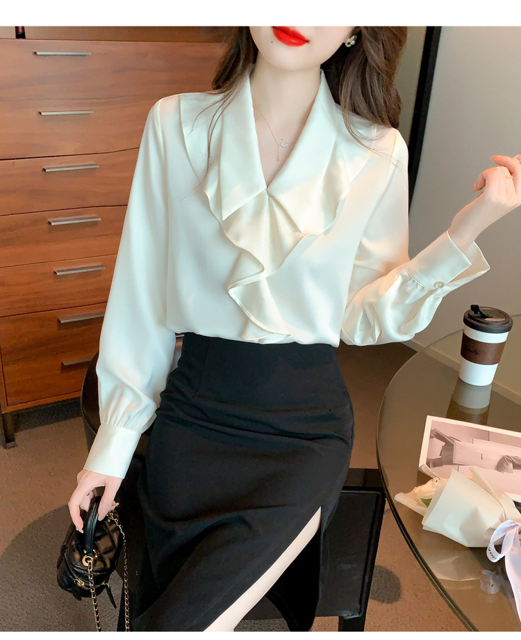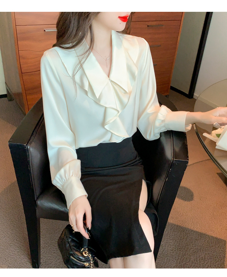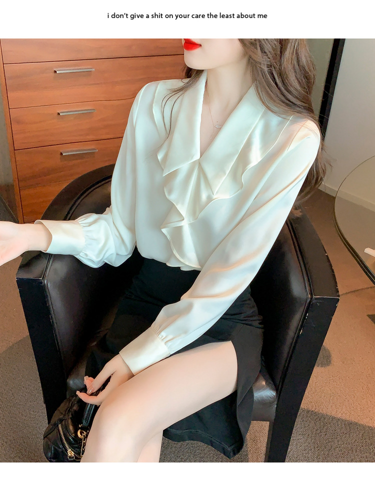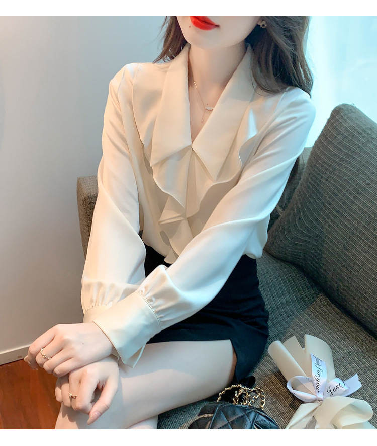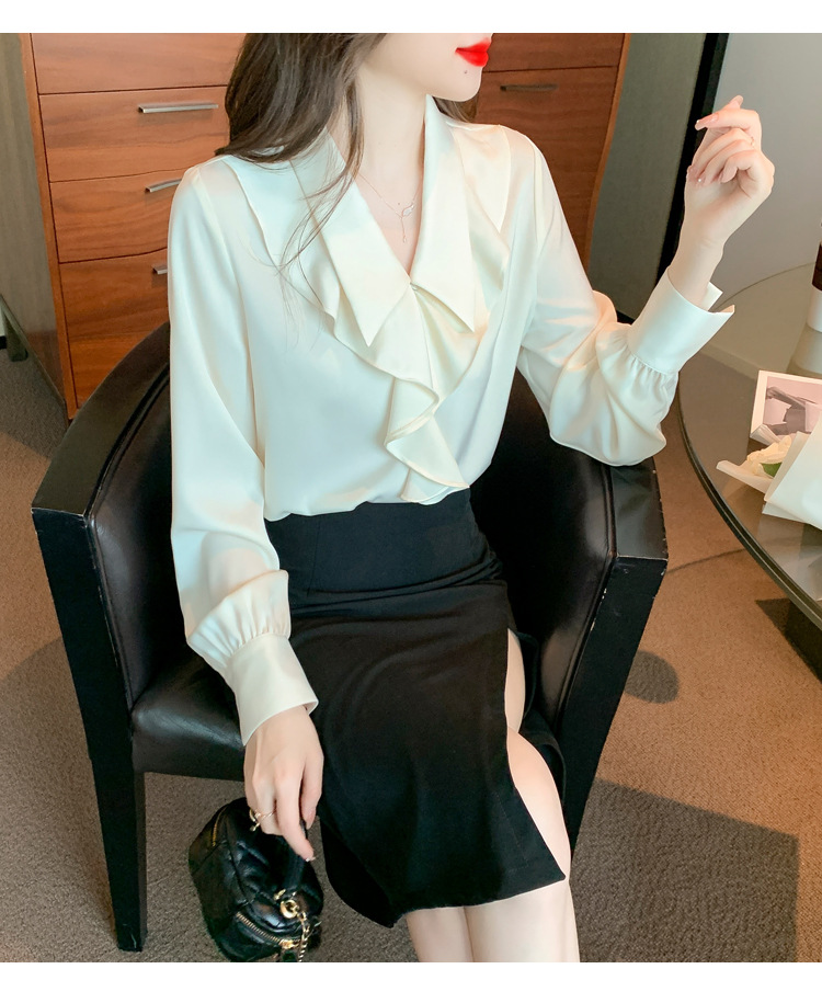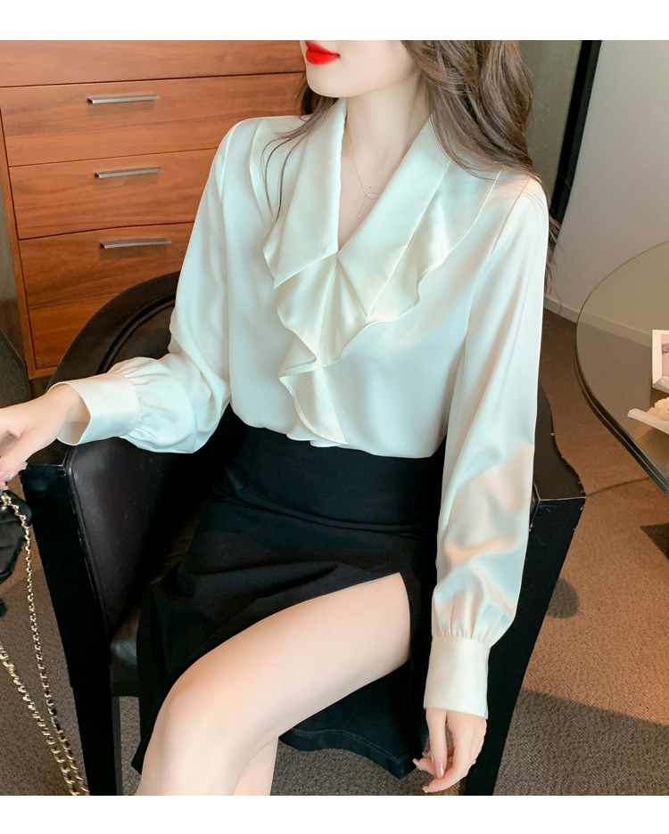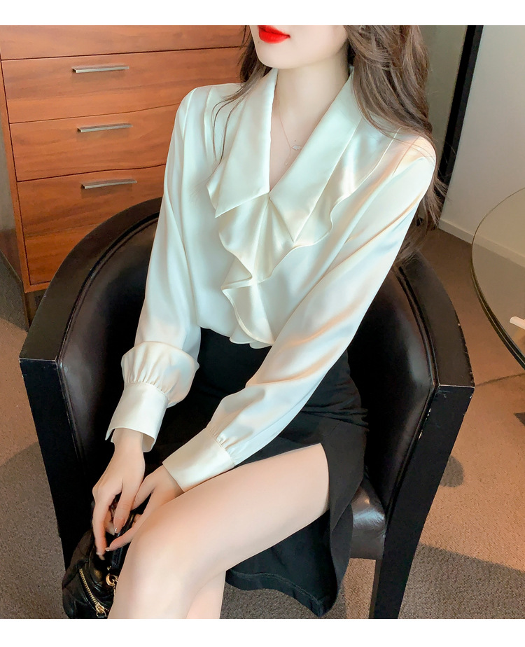 러플 셔츠 독특한 세련된 아름다운 프랑스 달콤한 탑 여성 봄과 가을 한국 스타일 전문 셔츠 착용스토어 가기