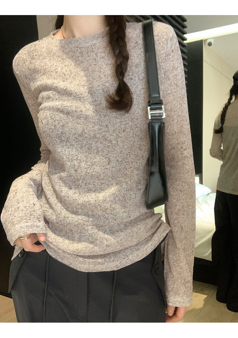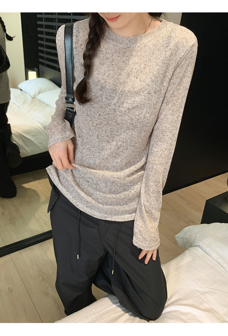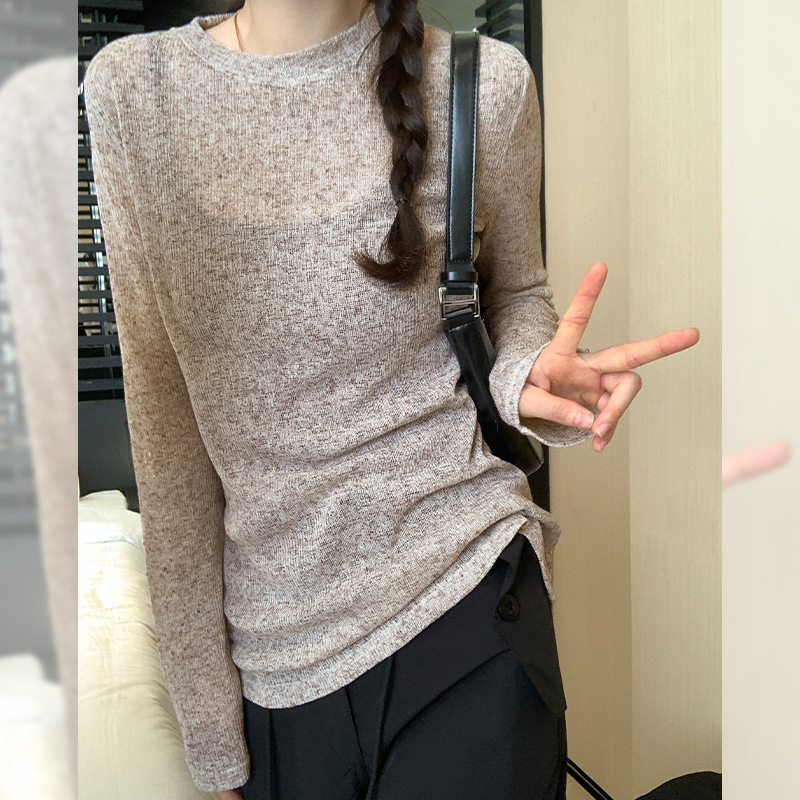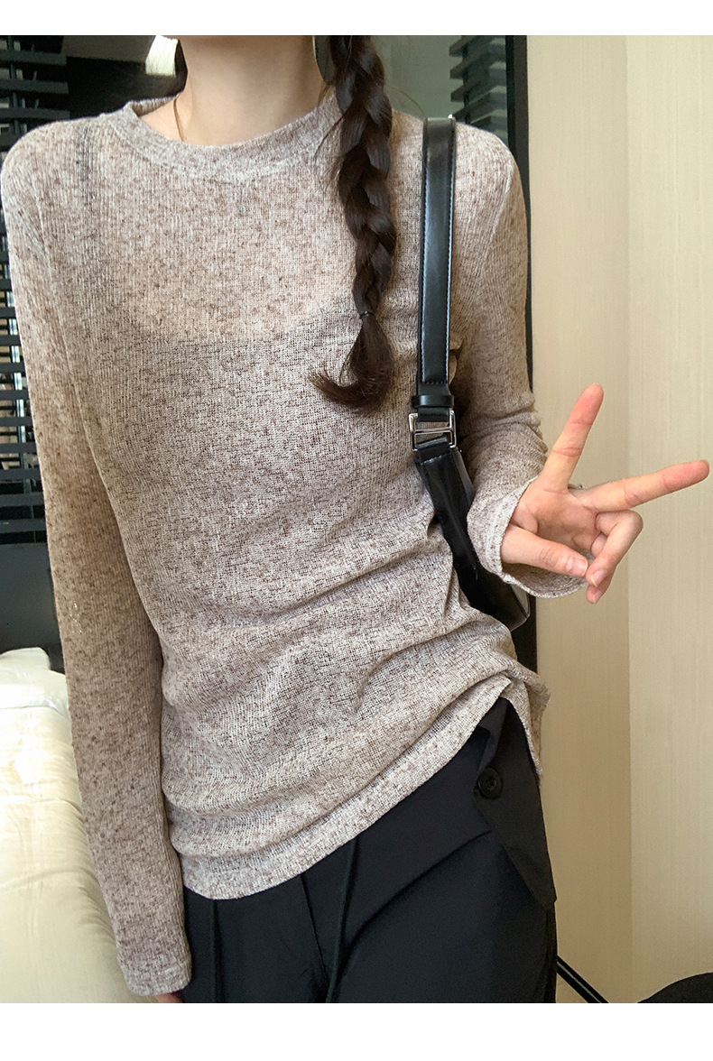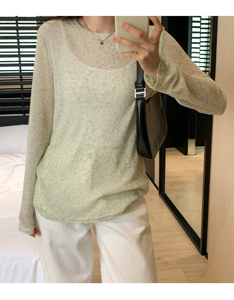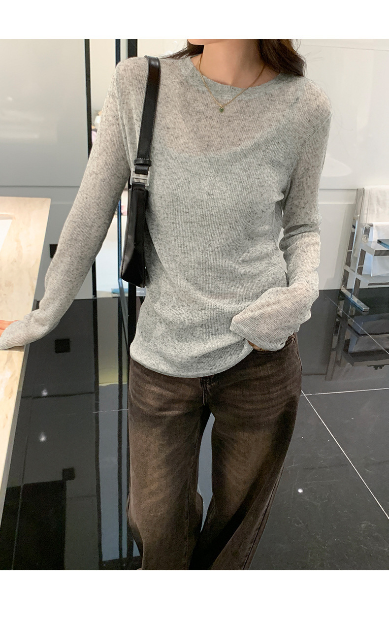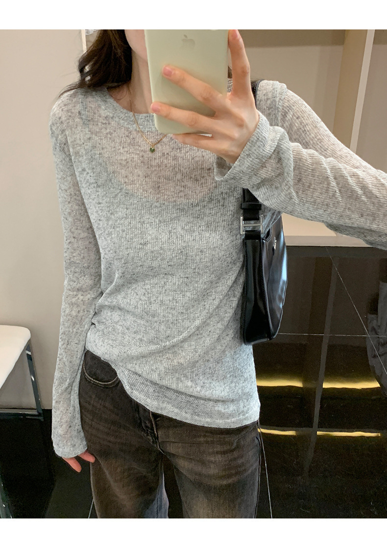 봄과 여름 게으른 니트 블라우스 탑 여성의 얇은 약간 투명한 외부 착용 고급 둥근 목 태양 보호 긴 소매