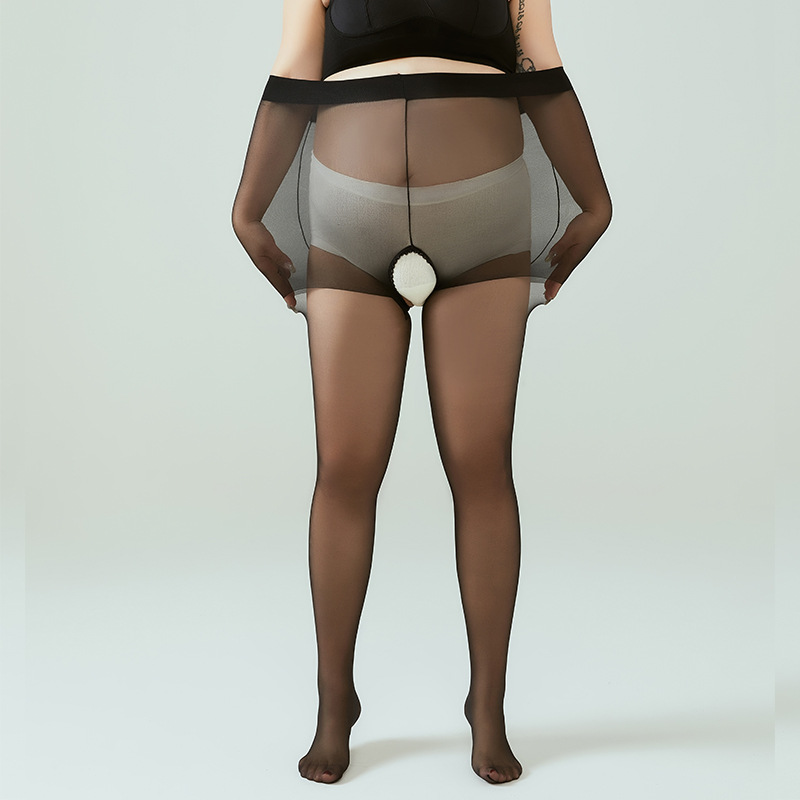 플러스 사이즈 통통녀 열린 가랑이 스타킹 섹시한 무료 검은 실크 300 진 미끄럼 가랑이 순수한 욕망 초박형 완전 투명 팬티 스타킹스토어 가기