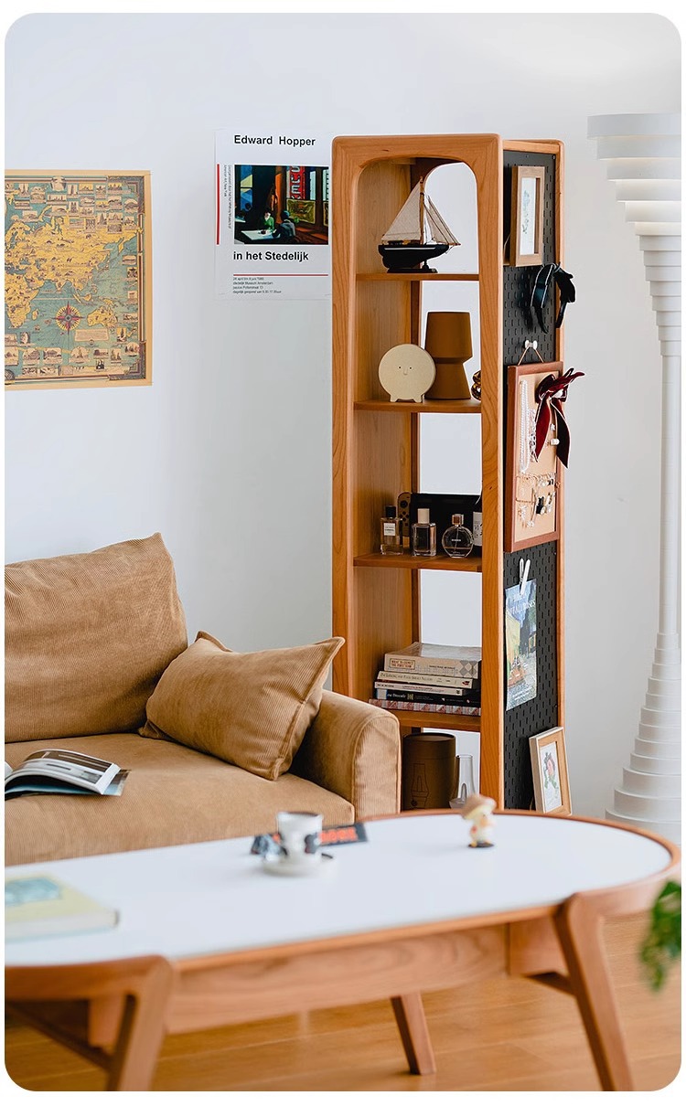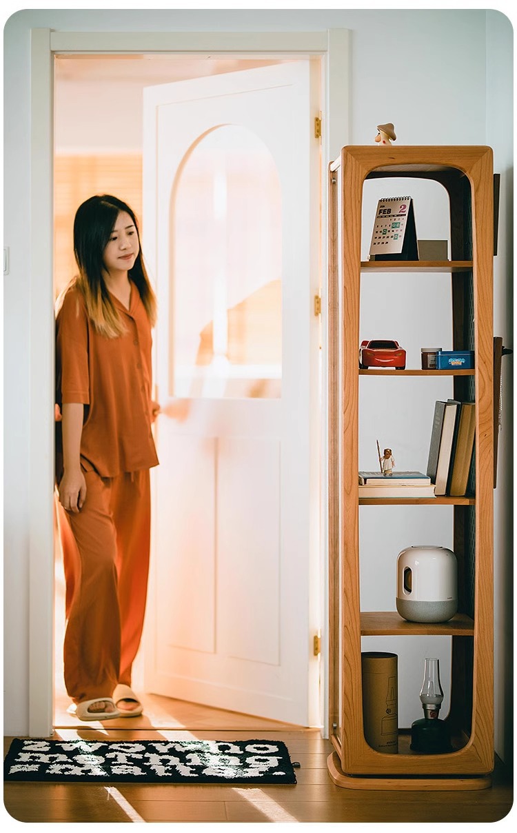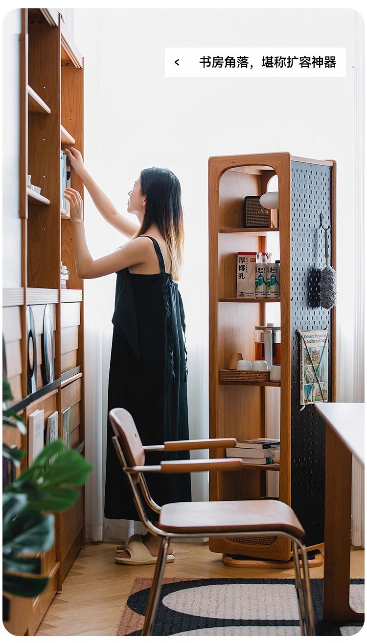 회전 드레싱 거울 단단한 나무 회전 책장 체리 나무 바닥 전신 거울 디스플레이 캐비닛 책장 보관 선반 책장스토어 가기