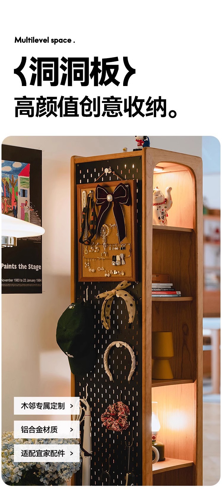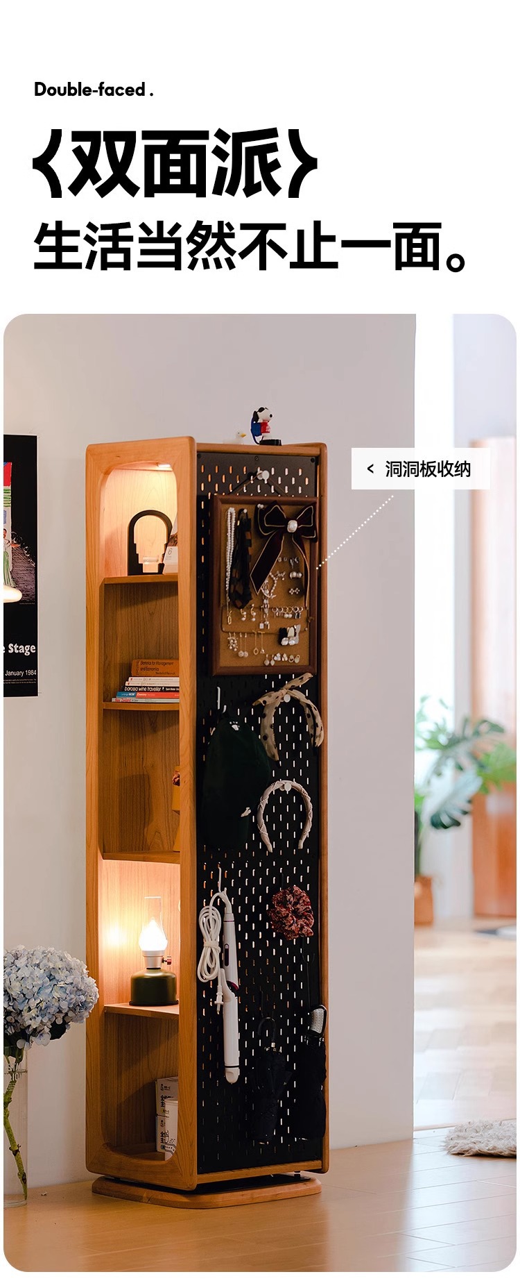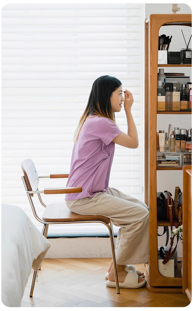 회전 드레싱 거울 단단한 나무 회전 책장 체리 나무 바닥 전신 거울 디스플레이 캐비닛 책장 보관 선반 책장