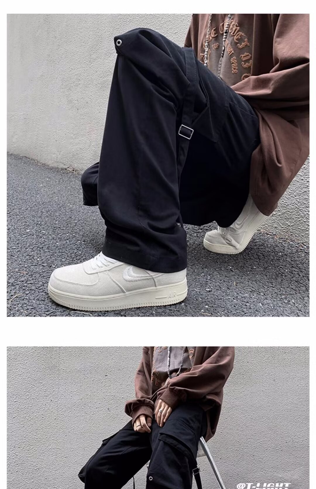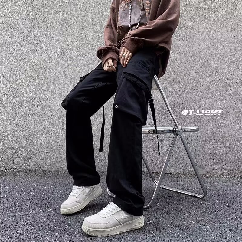 유럽과 미국의 분위기 스타일 바지 남성용 봄 미국 복고풍 대형 포켓 스트레이트 오버볼 hiphop 야외 바지