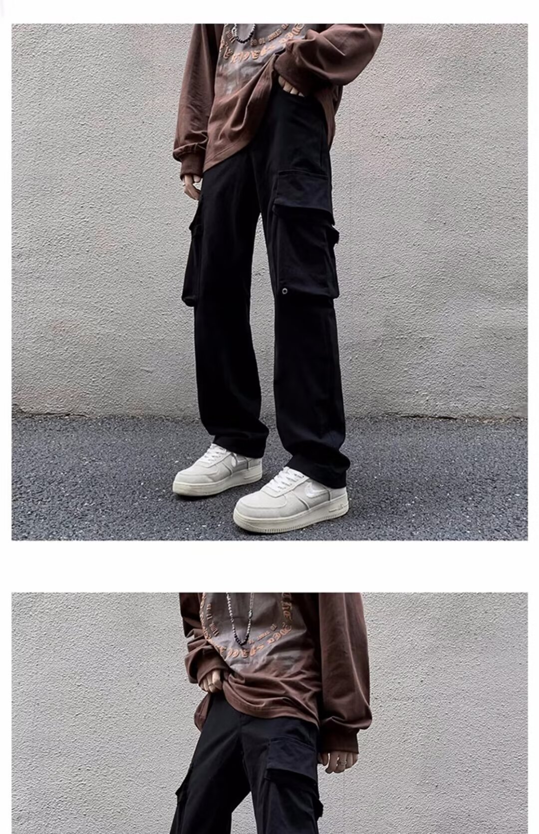 유럽과 미국의 분위기 스타일 바지 남성용 봄 미국 복고풍 대형 포켓 스트레이트 오버볼 hiphop 야외 바지스토어 가기