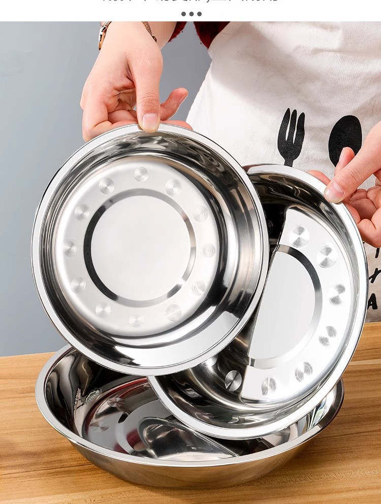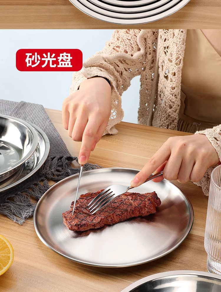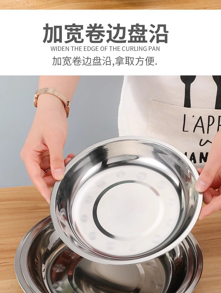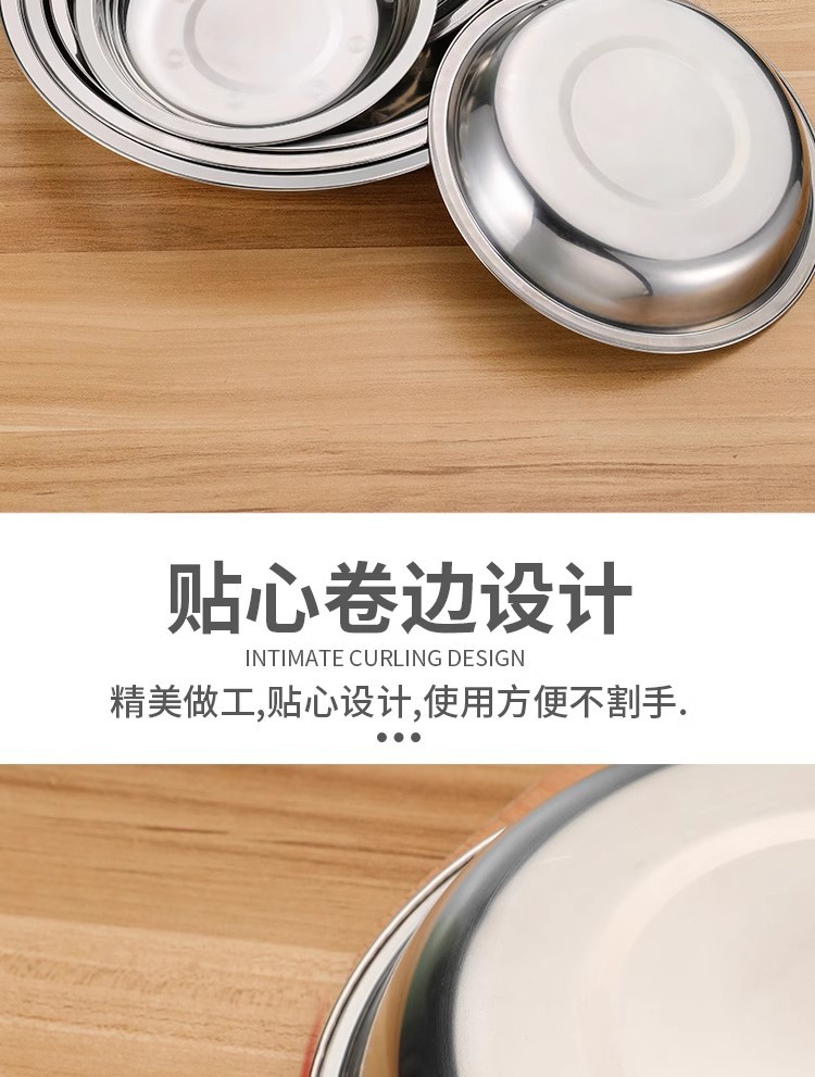 스테인레스 스틸 플레이트를 두껍게 두껍게 한 접시 둥근 접시 접시 가정용 플레이트 유치원 어린이 식기 얕은 평면