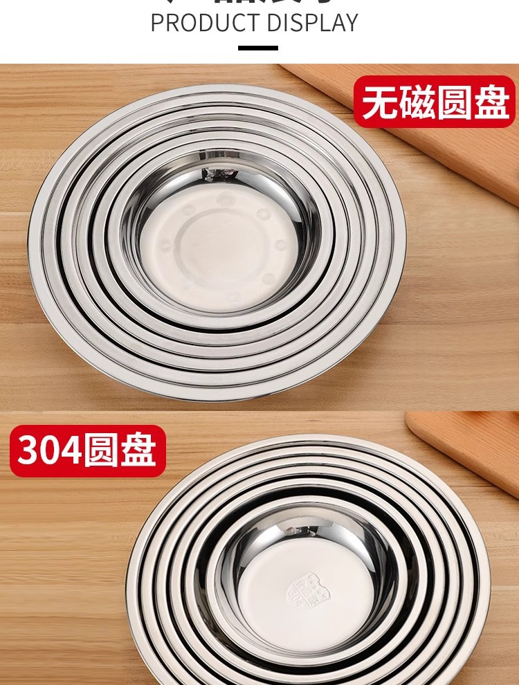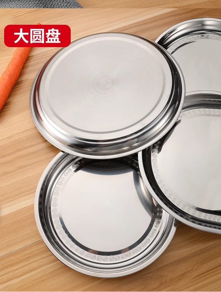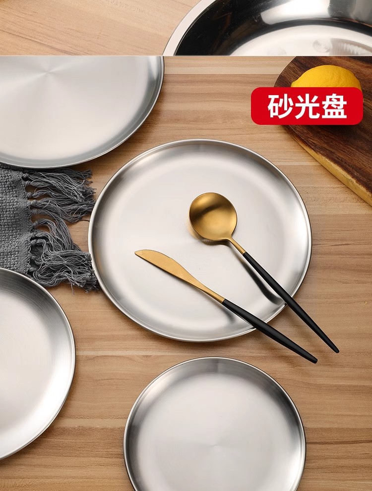 스테인레스 스틸 플레이트를 두껍게 두껍게 한 접시 둥근 접시 접시 가정용 플레이트 유치원 어린이 식기 얕은 평면스토어 가기
