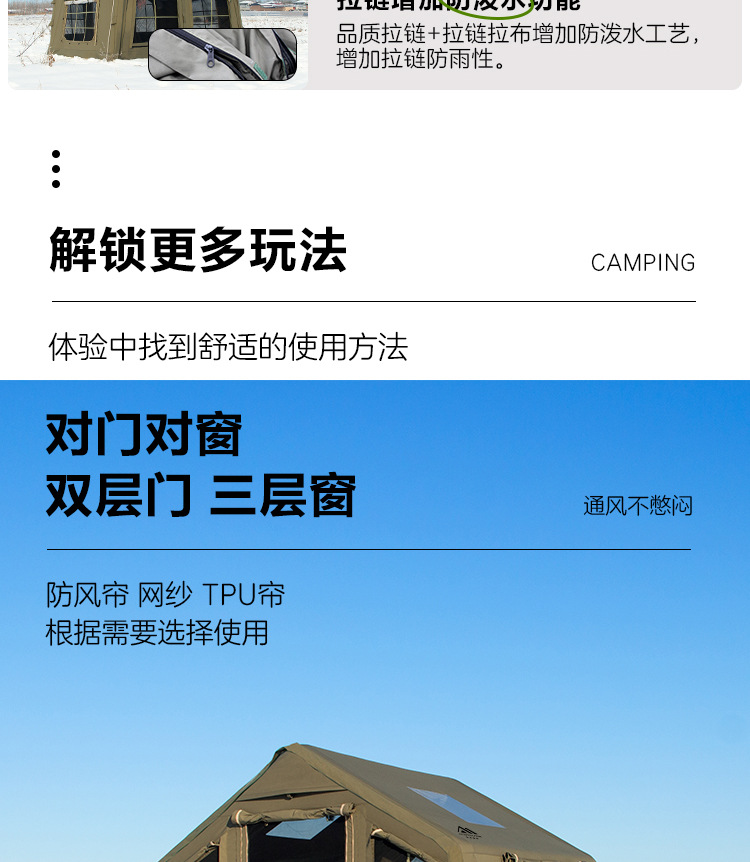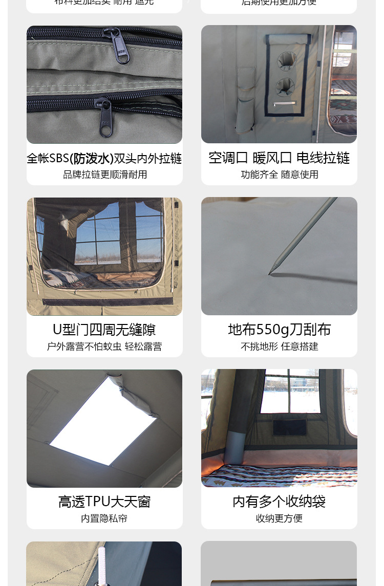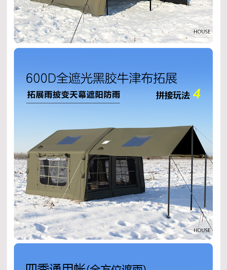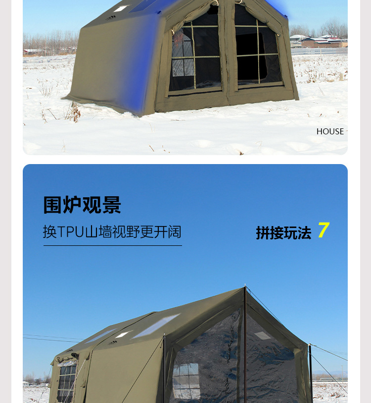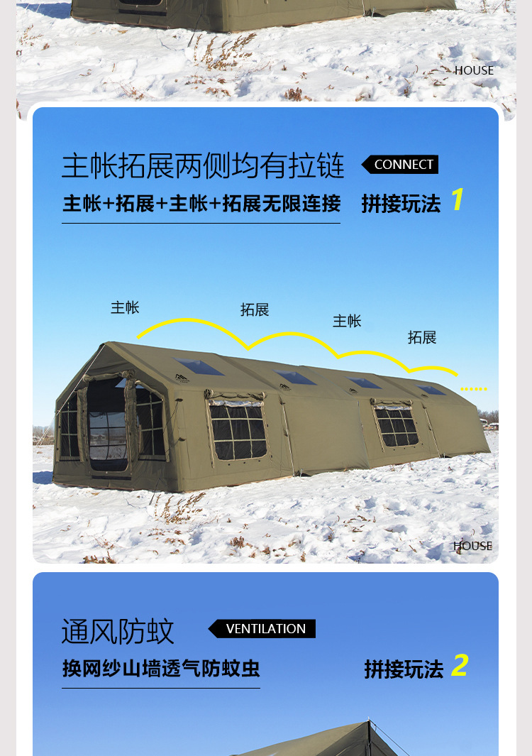 • 밀리터리 그린 8+8.8 ㎡ (확장된 공기 기둥 + 메인 텐트 + 확장 + 탈착식 TPU 커튼 + 캐노피 폴 3개의 전체 세트) (5일 이내 배송)