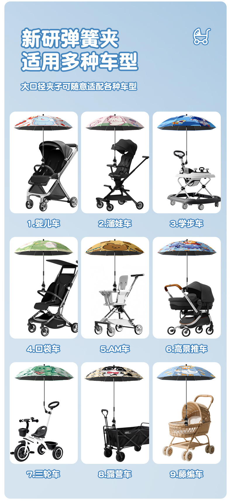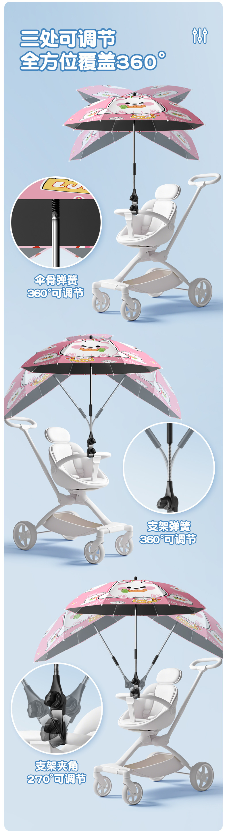 아기 유모차 차양 아기 세발 자전거 보편적 인 손으로 어린이 자동차 우산 걷는 아기 유물 태양 보호 태양 우산