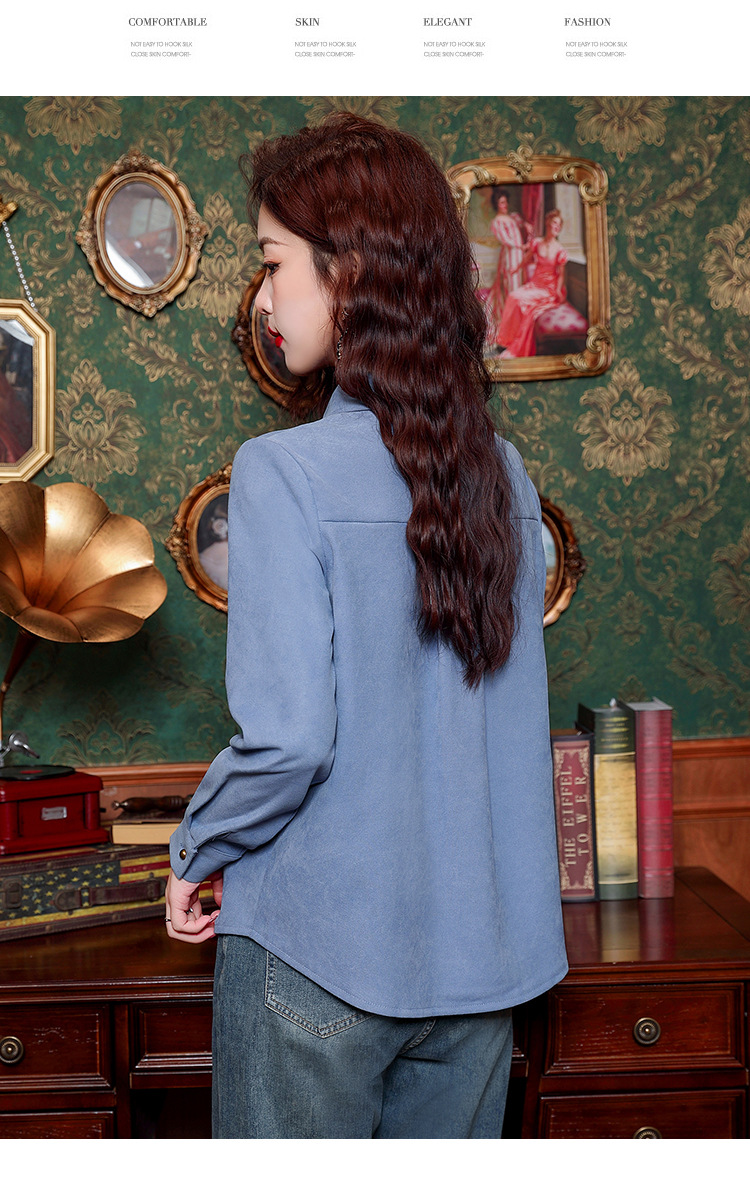 브러쉬 셔츠 여성용 봄웨어 2024 새로운 패션 시대 감소 긴팔 셔츠 디자인 감각 여성 셔츠 도매