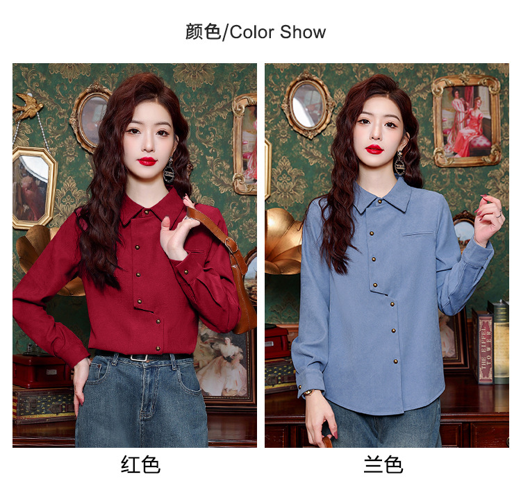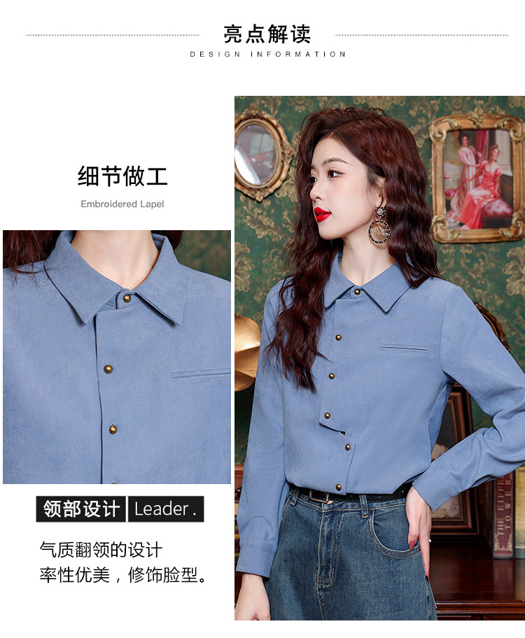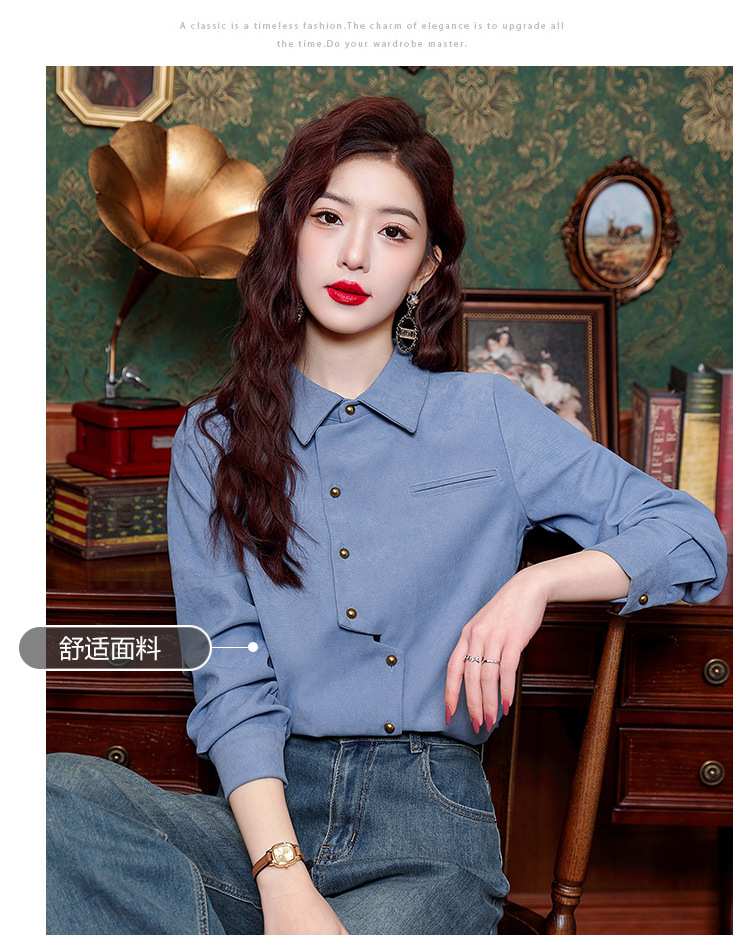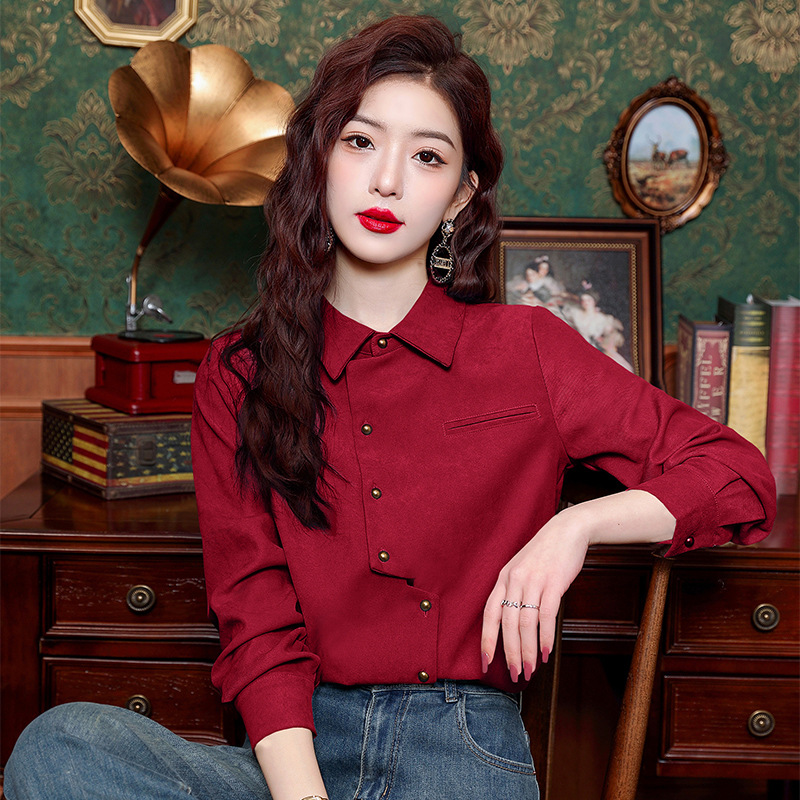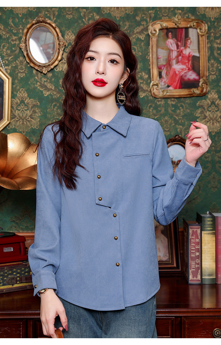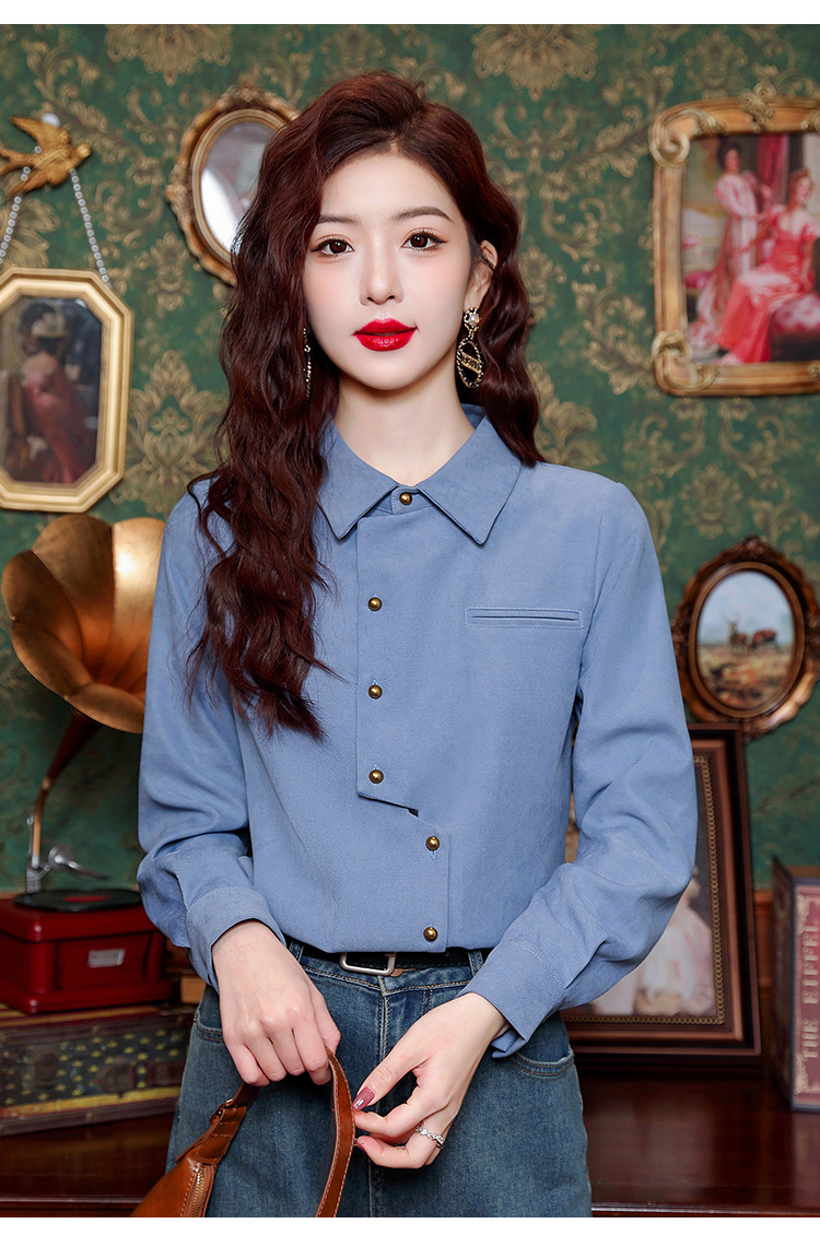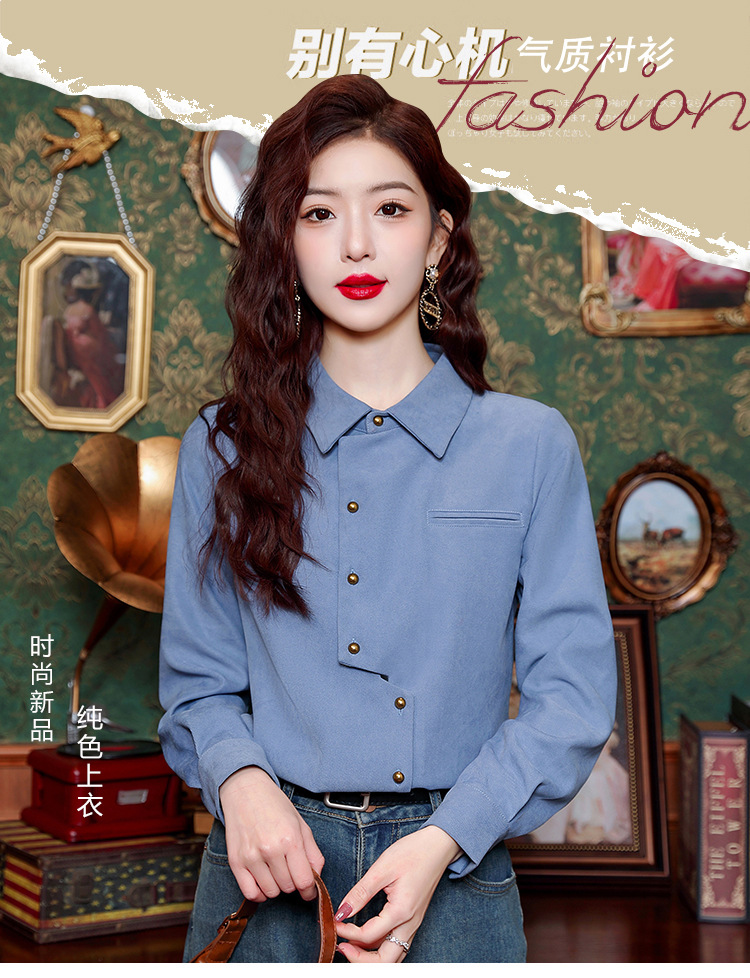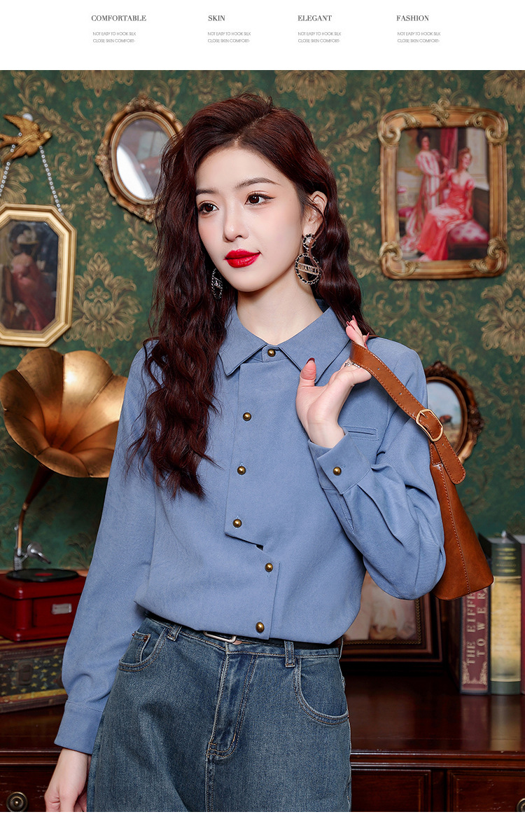 브러쉬 셔츠 여성용 봄웨어 2024 새로운 패션 시대 감소 긴팔 셔츠 디자인 감각 여성 셔츠 도매스토어 가기