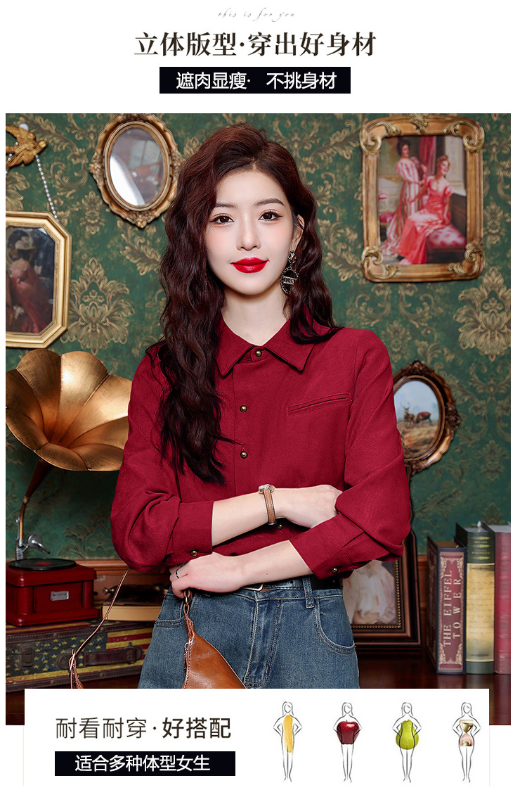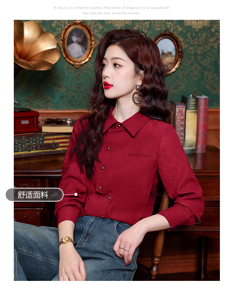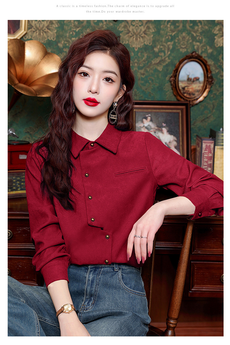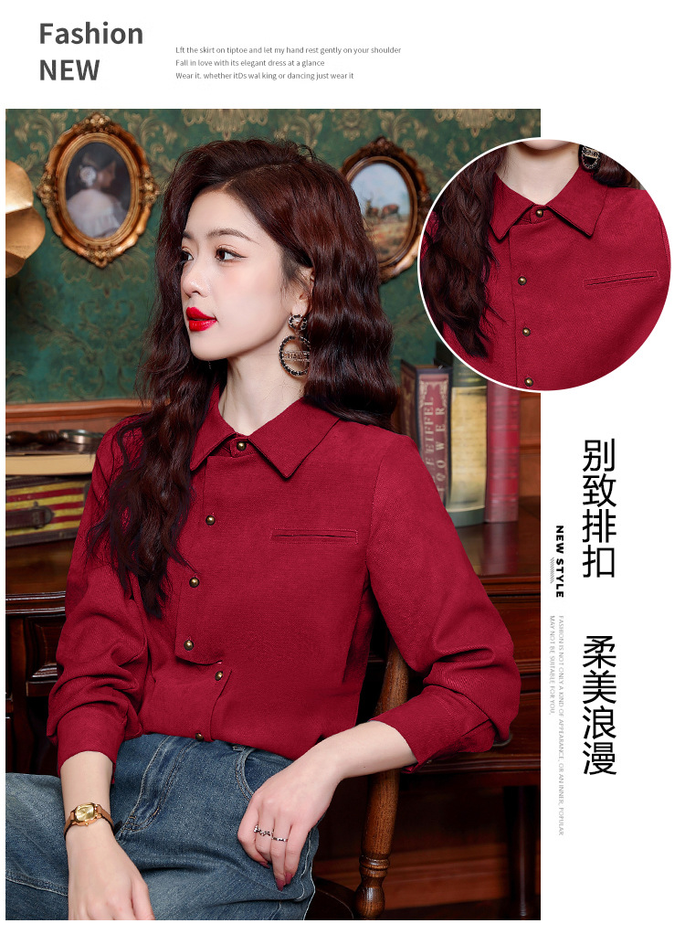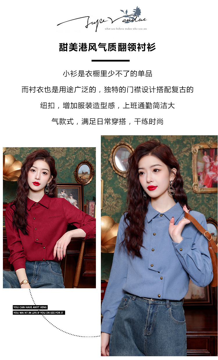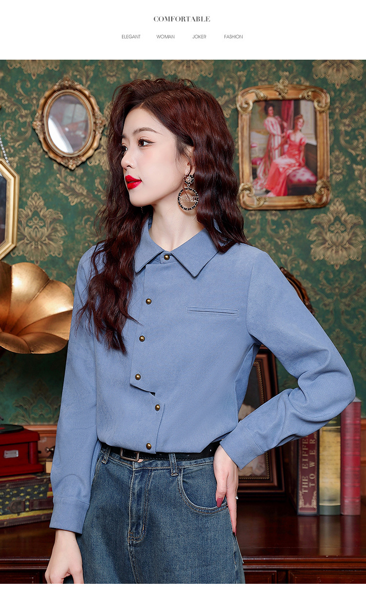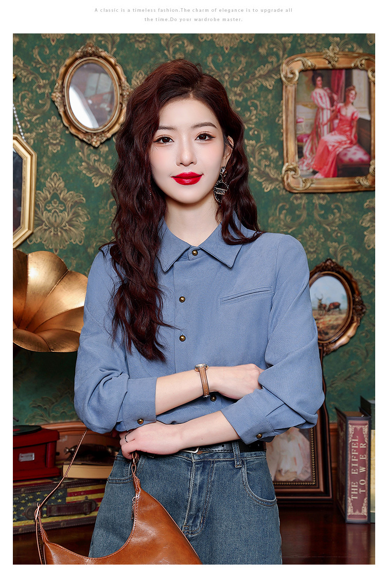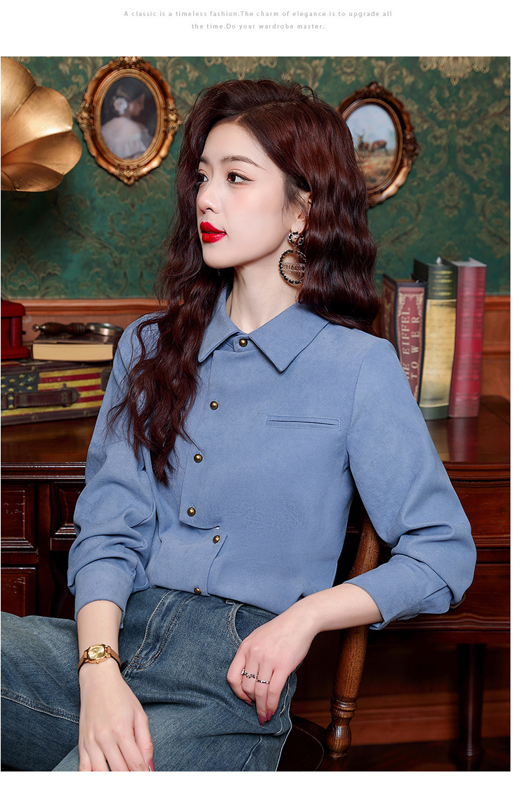 브러쉬 셔츠 여성용 봄웨어 2024 새로운 패션 시대 감소 긴팔 셔츠 디자인 감각 여성 셔츠 도매스토어 가기