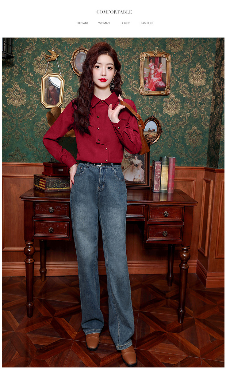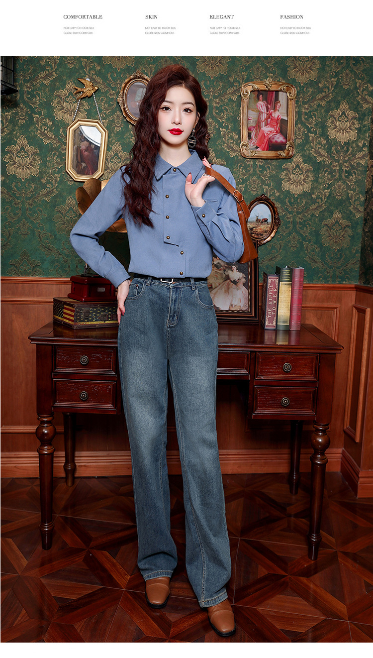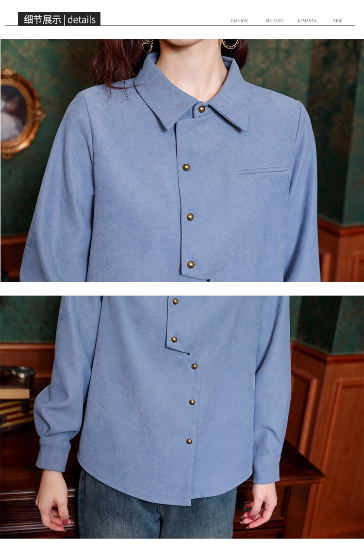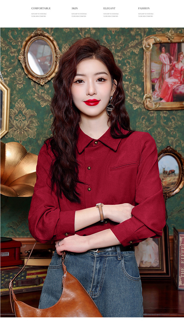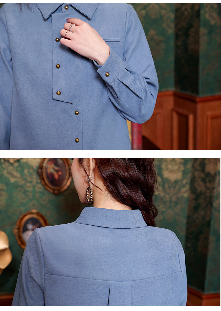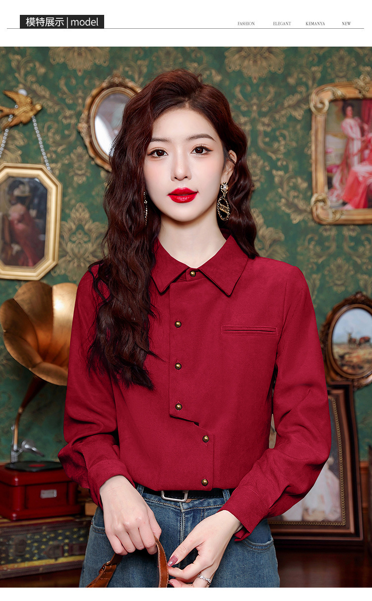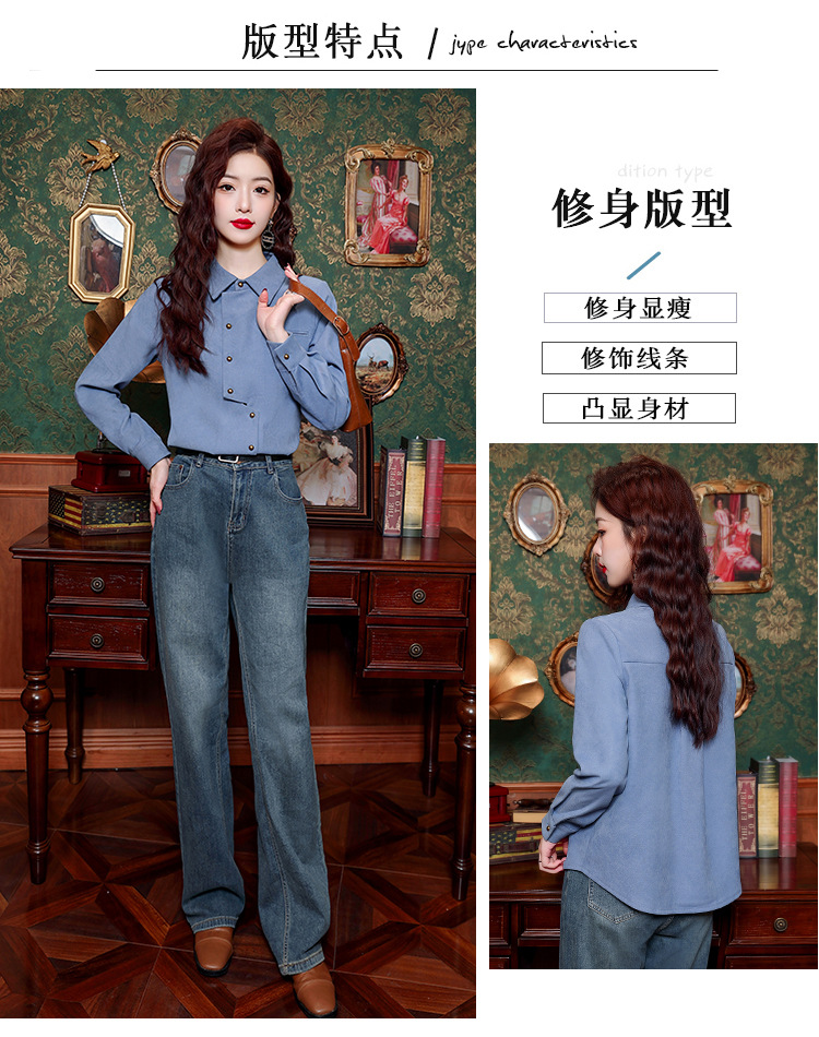 브러쉬 셔츠 여성용 봄웨어 2024 새로운 패션 시대 감소 긴팔 셔츠 디자인 감각 여성 셔츠 도매스토어 가기