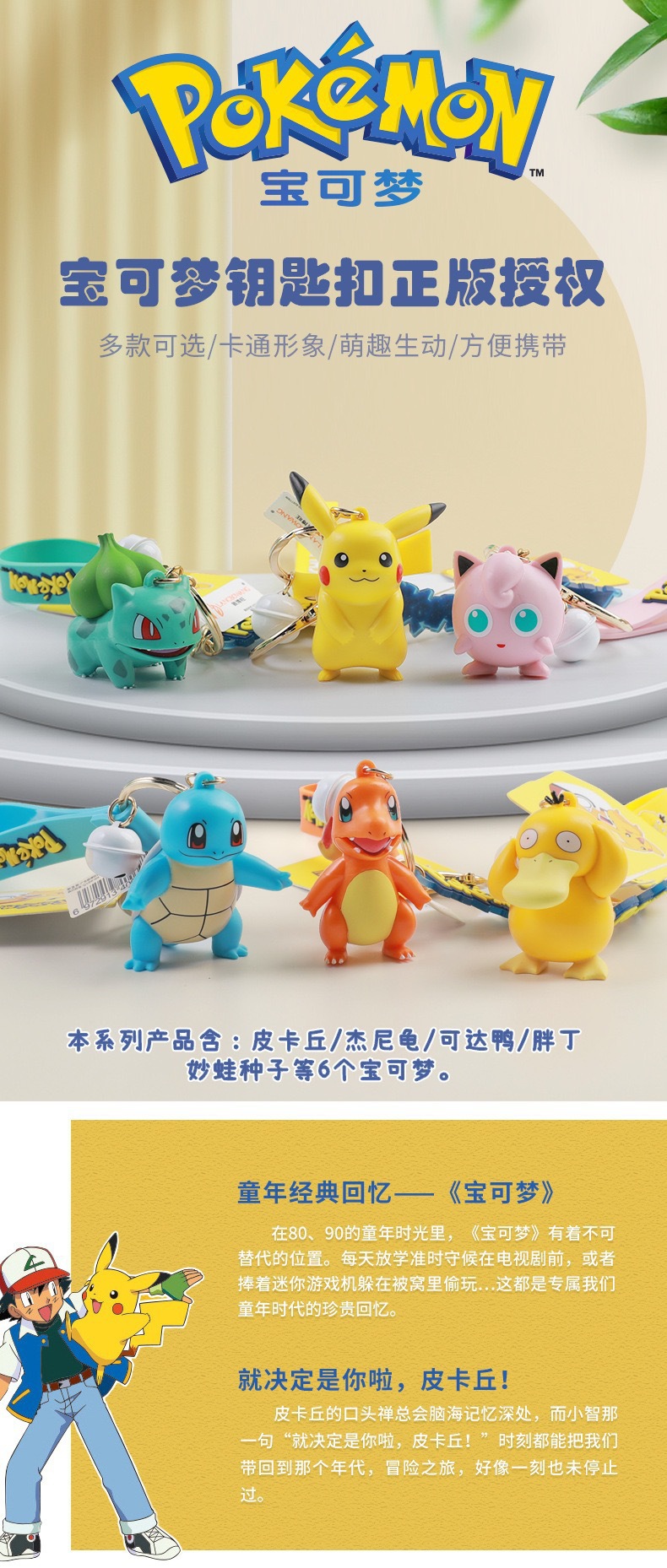 정품 마술 아기 Bao Ke Meng Pikachu Ke Da 오리 키 체인 펜던트 장식 인형