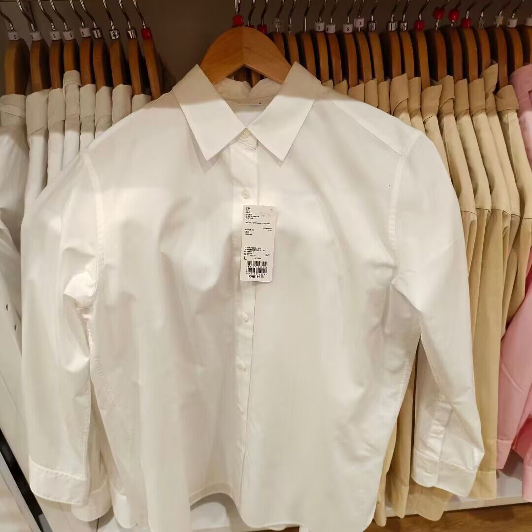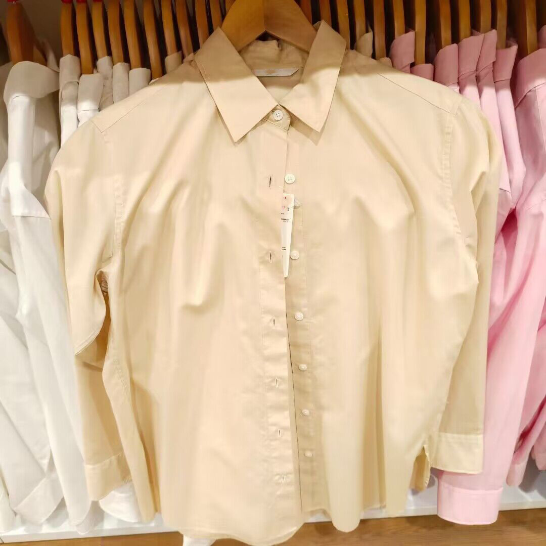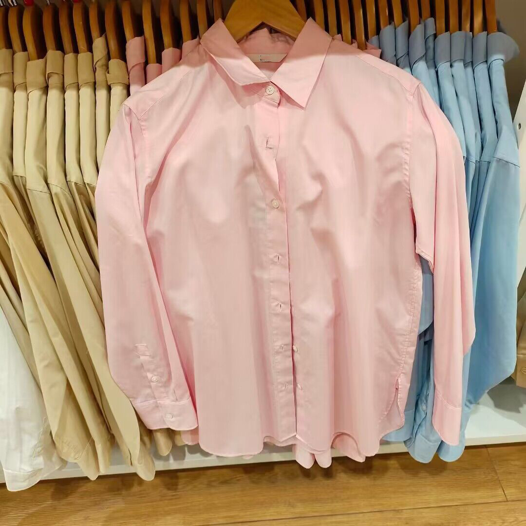 일본 여성복 2024 봄 긴팔 면 셔츠 단색 캐주얼 에어컨 셔츠 긴팔 셔츠 464804