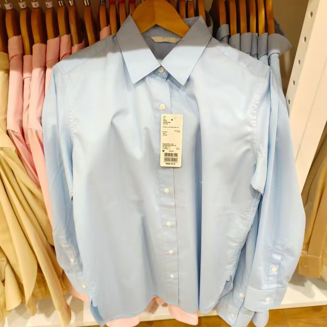 일본 여성복 2024 봄 긴팔 면 셔츠 단색 캐주얼 에어컨 셔츠 긴팔 셔츠 464804스토어 가기