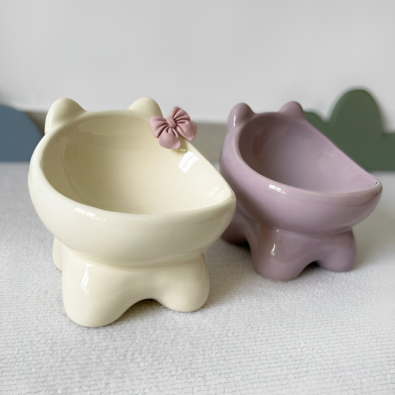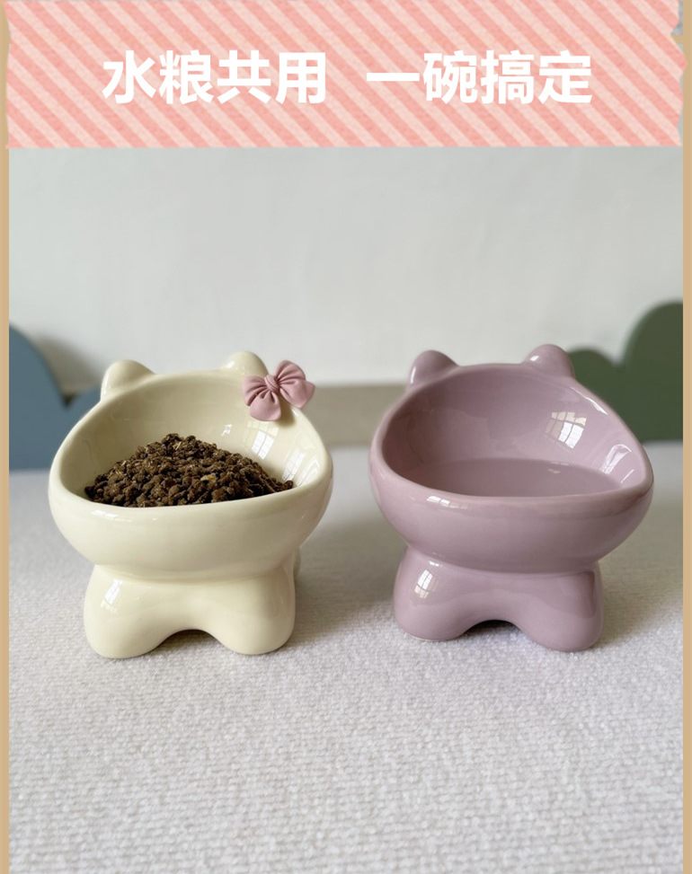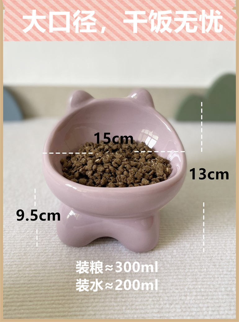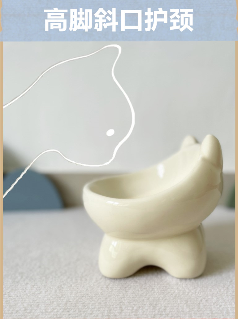 고양이 그릇 고양이 개 음식 그릇 세라믹 귀여운 창조적 인 비스듬한 입 애완 동물 그릇 음식 쌀 마시는 물 높은 다리 목 보호 소형 및 중형