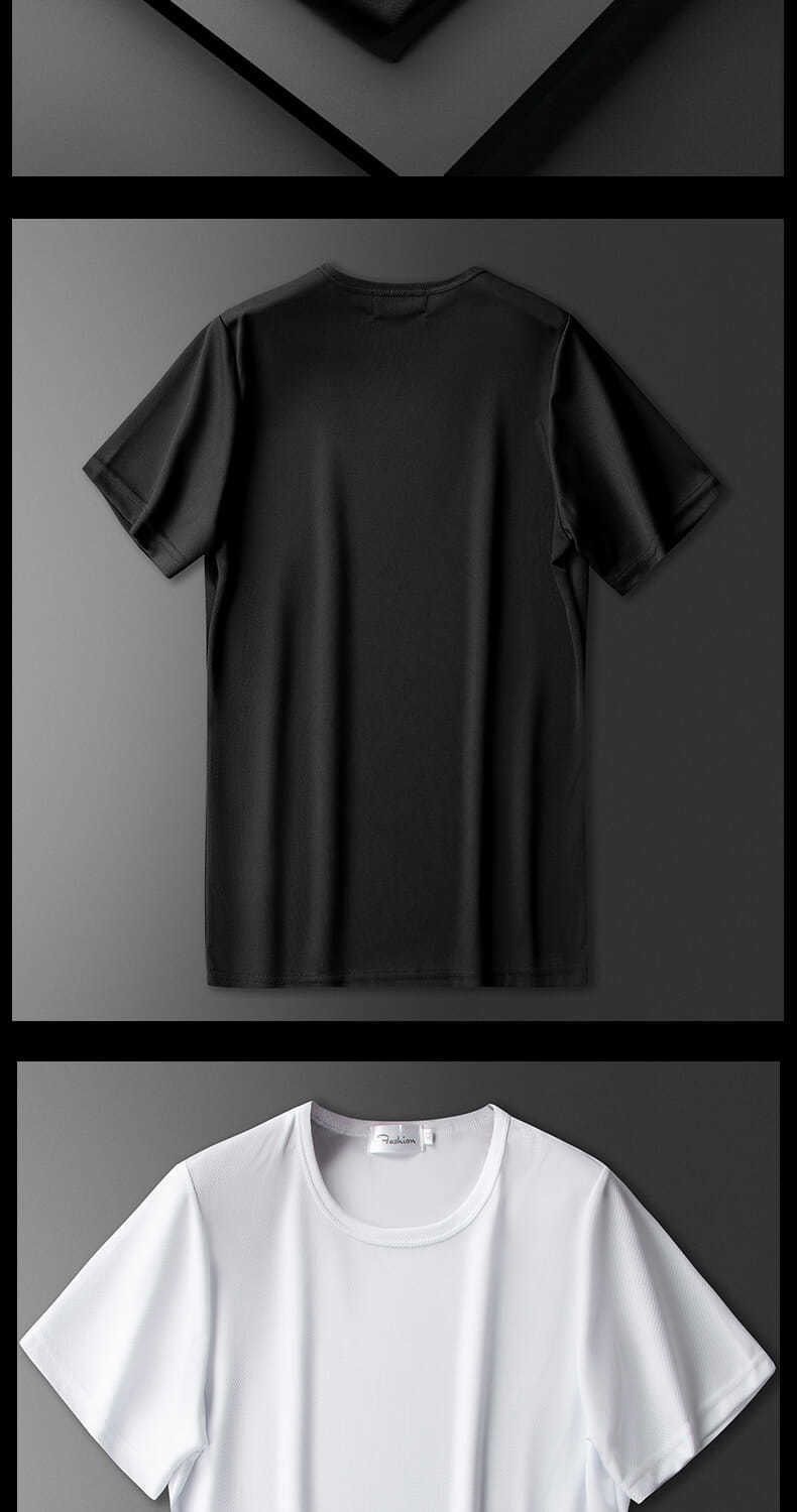 2024 여름 아이스 실크 메쉬 짧은 소매 남성용 티셔츠 캐주얼 반소매 티셔츠 바닥 셔츠 트렌디 한 남성용 티셔츠 탑스토어 가기