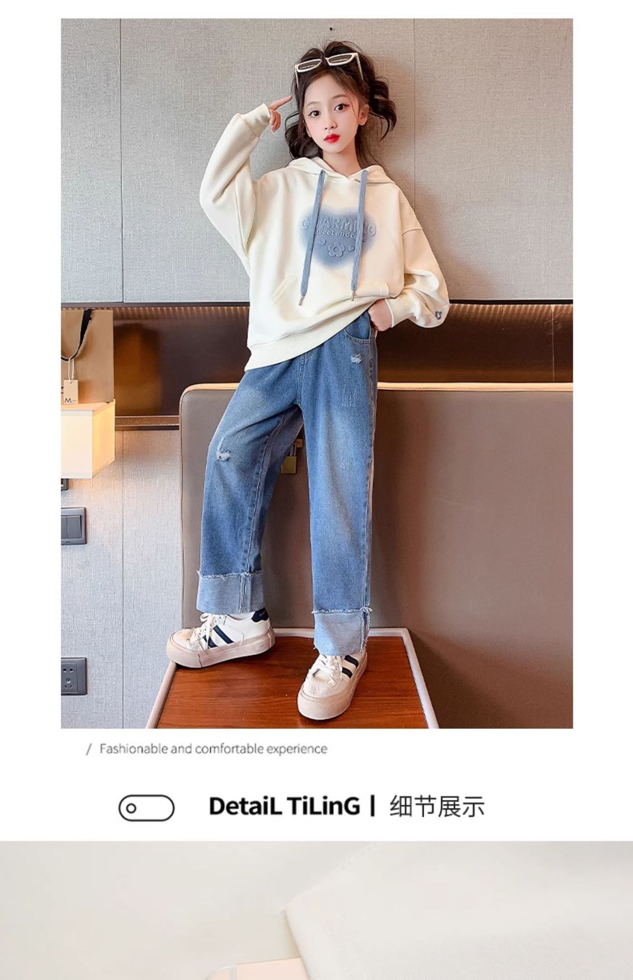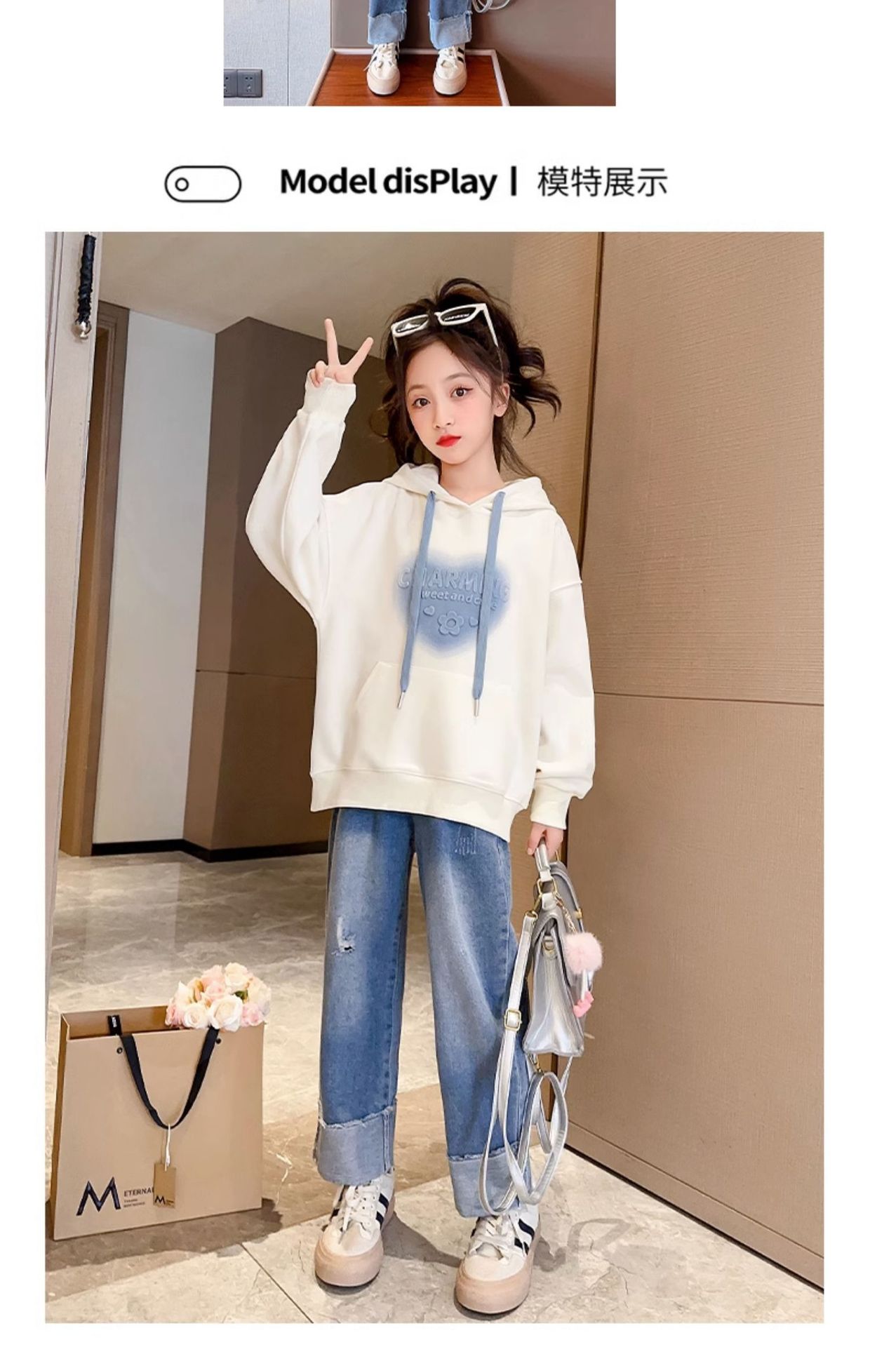 소녀의 봄과 가을 스웨터 2024 새로운 서양식 어린이 봄과 가을 후드 탑 소녀들의 가을 옷 소녀스토어 가기