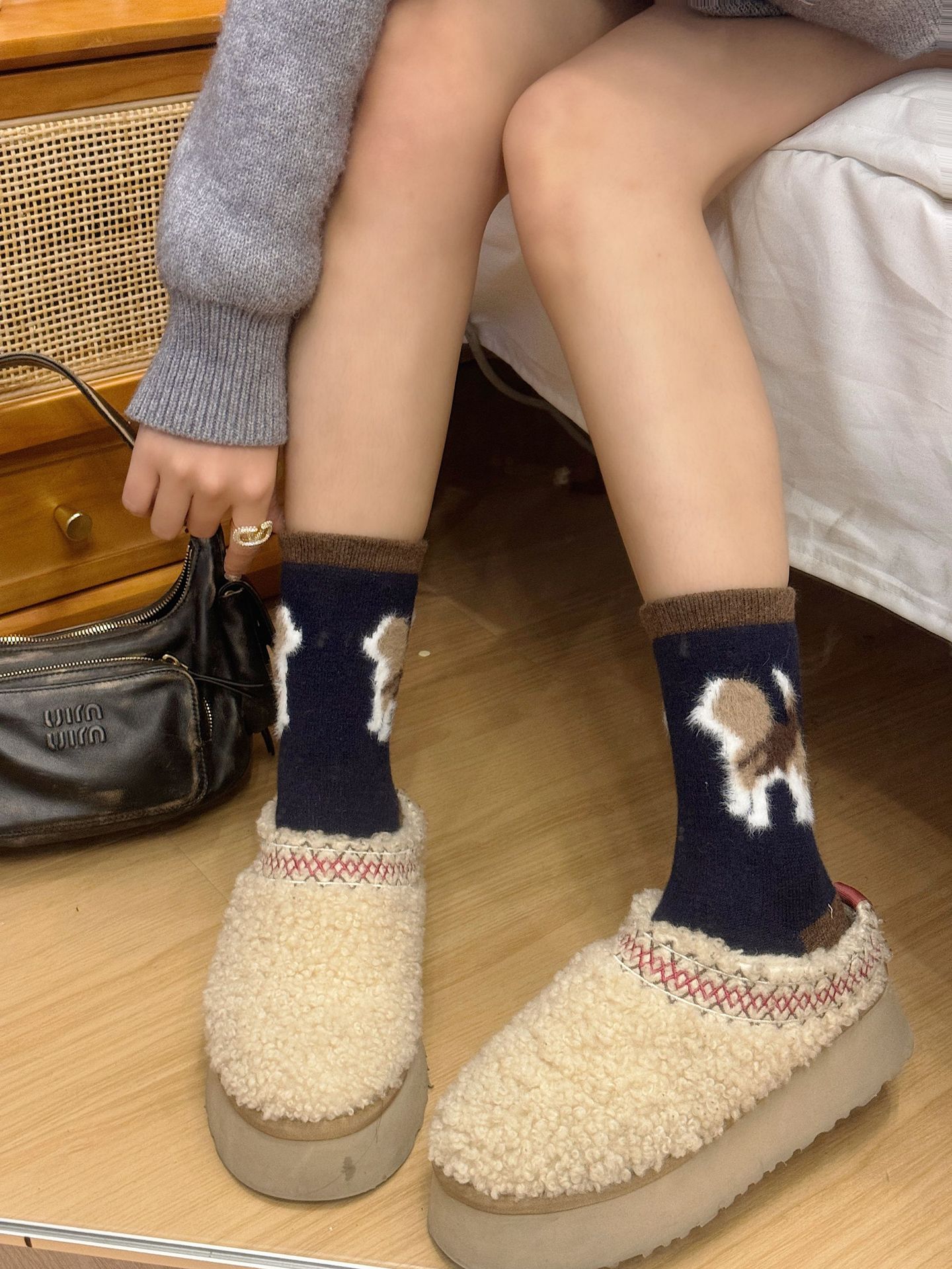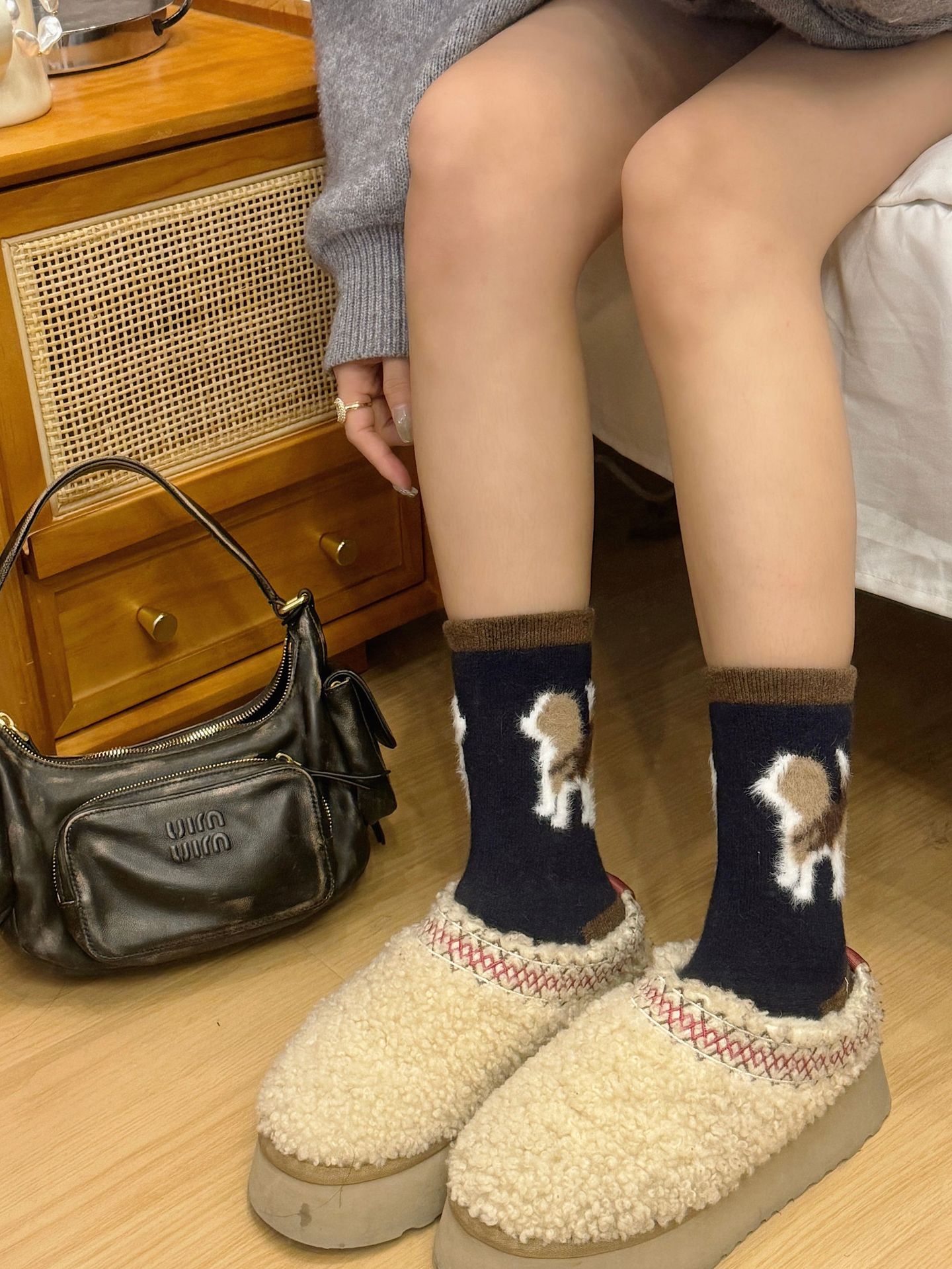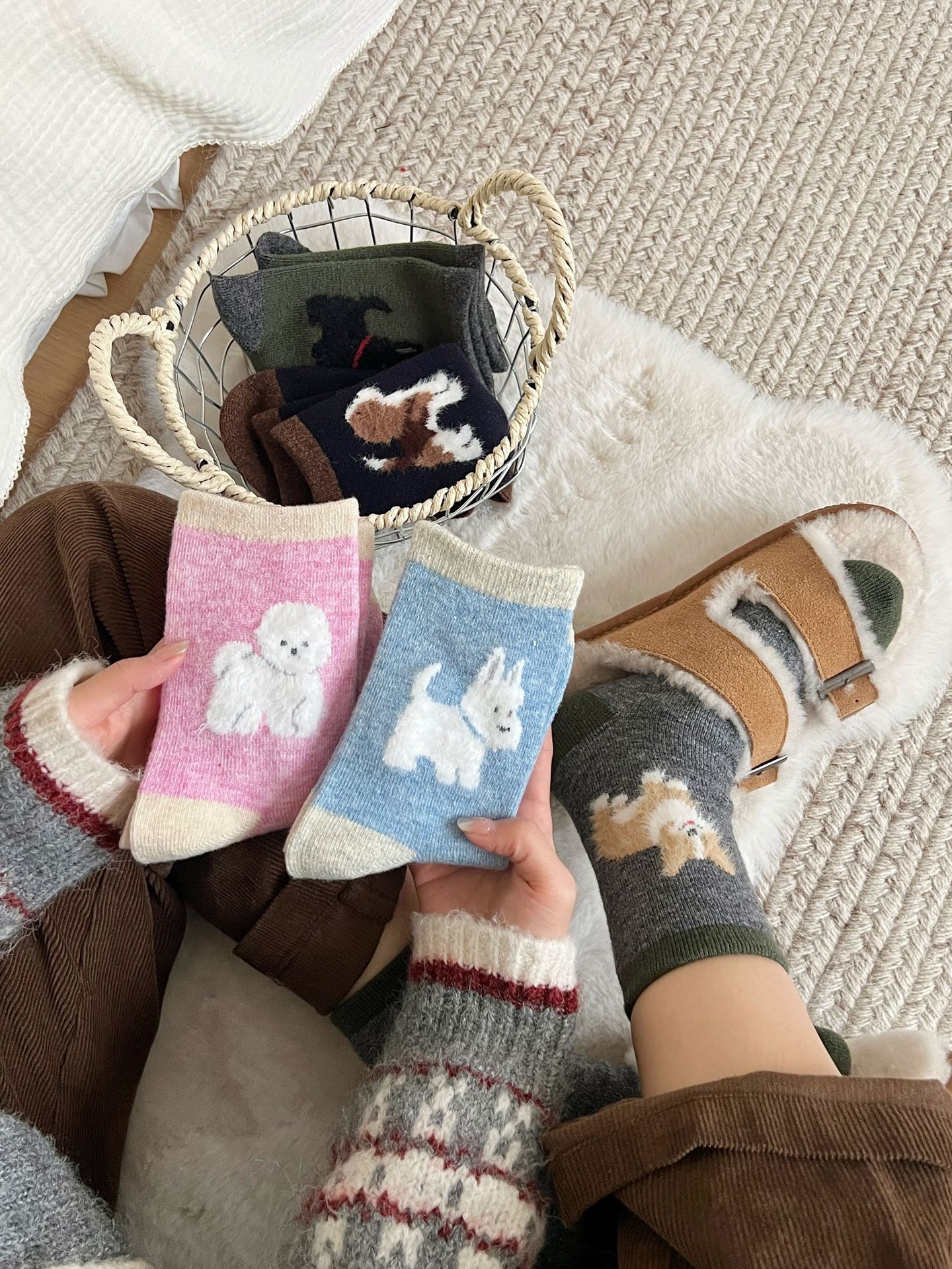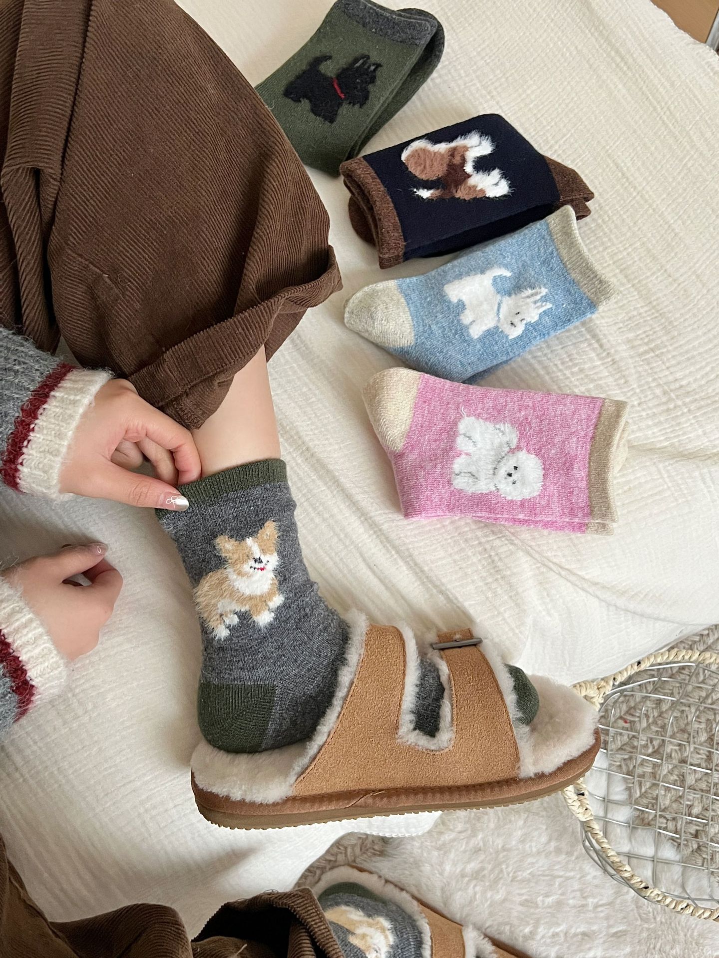 봄과 가을 양모 강아지 만화 양말 귀여운 바람 다섯 개 무리는 학문적 바람 색상 매칭 파일 양말스토어 가기